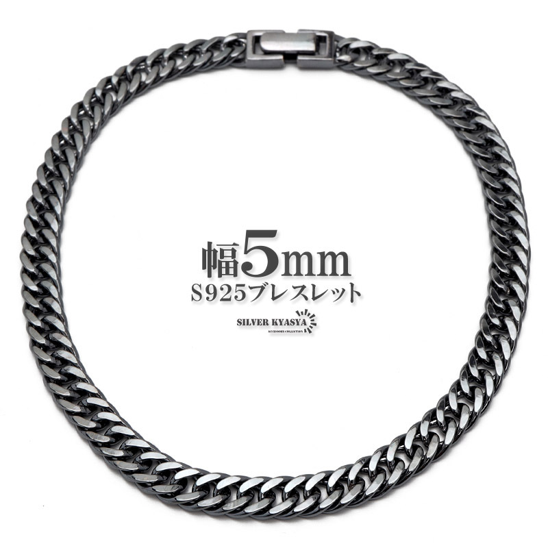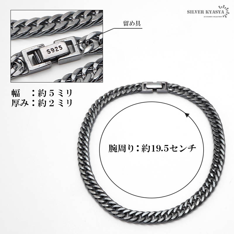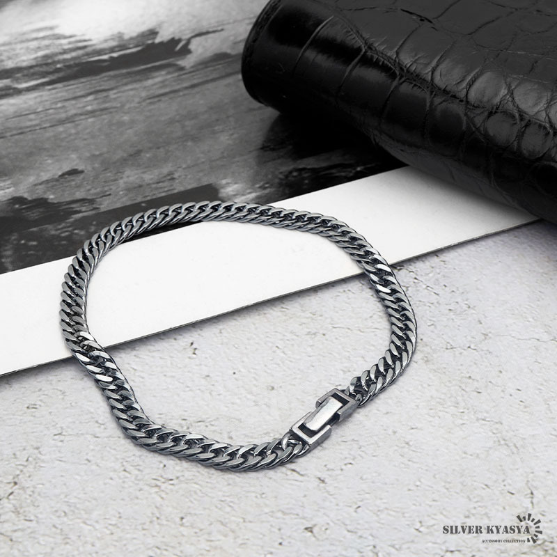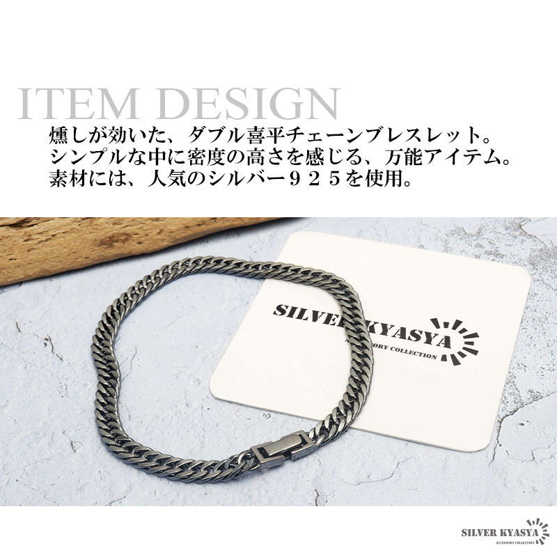 シルバー925 ダブル喜平ブレスレット 幅5mm メンズブレスレット チェーンブレスレット 燻し 中折れ シルバー ブラック 黒