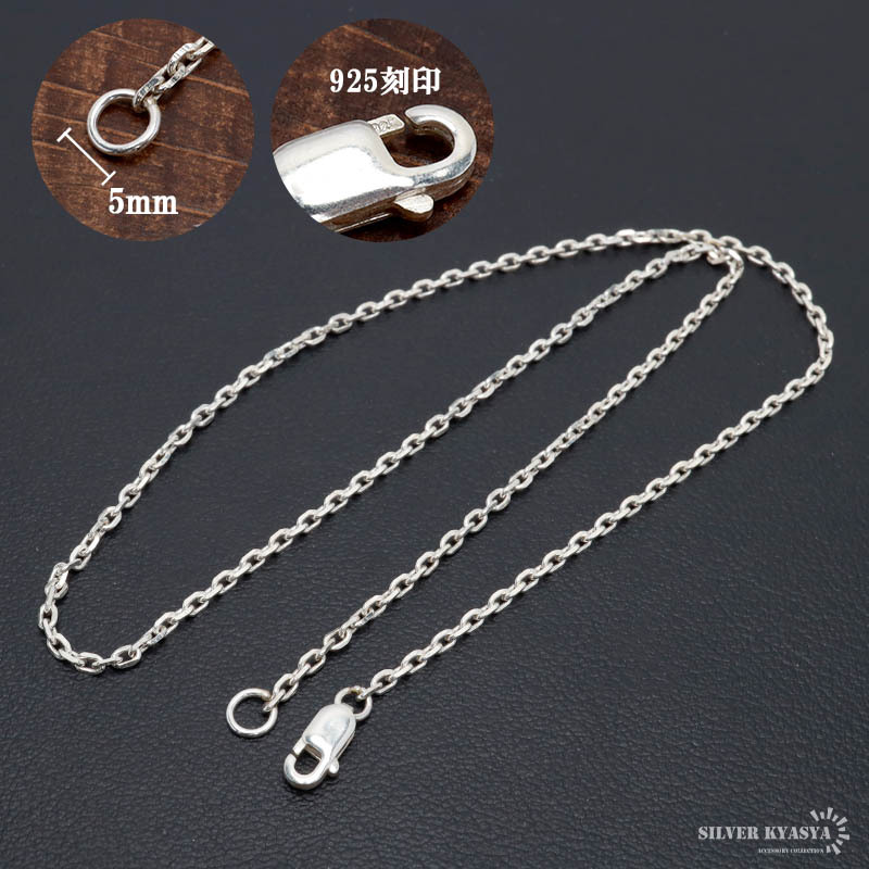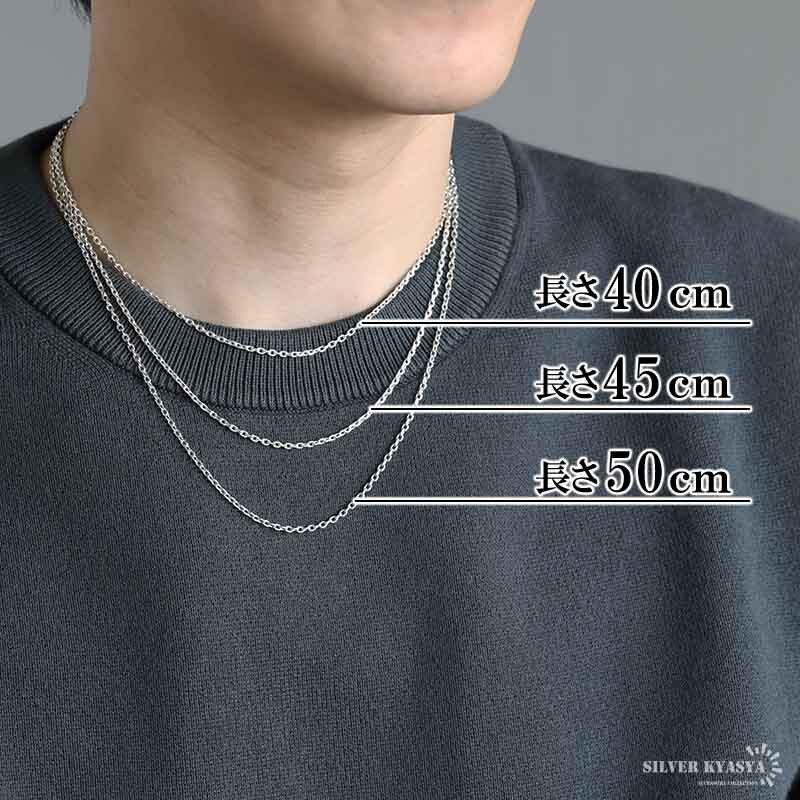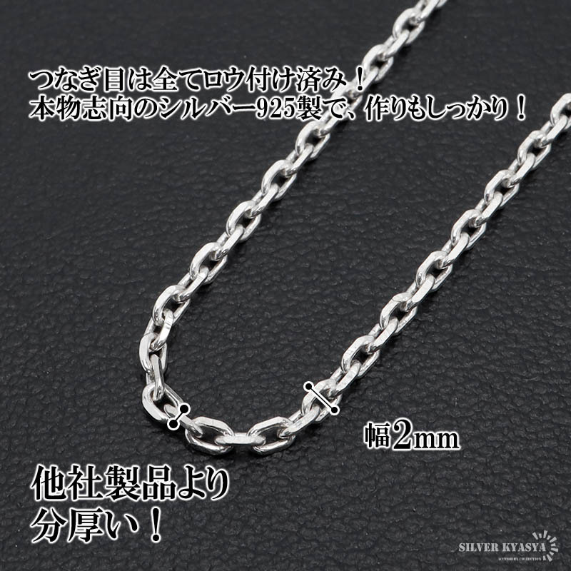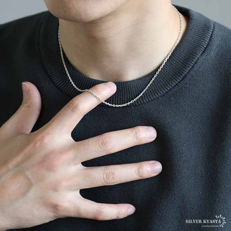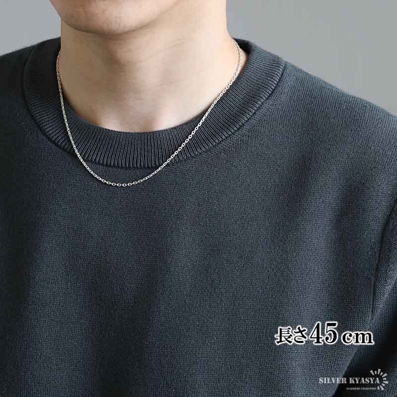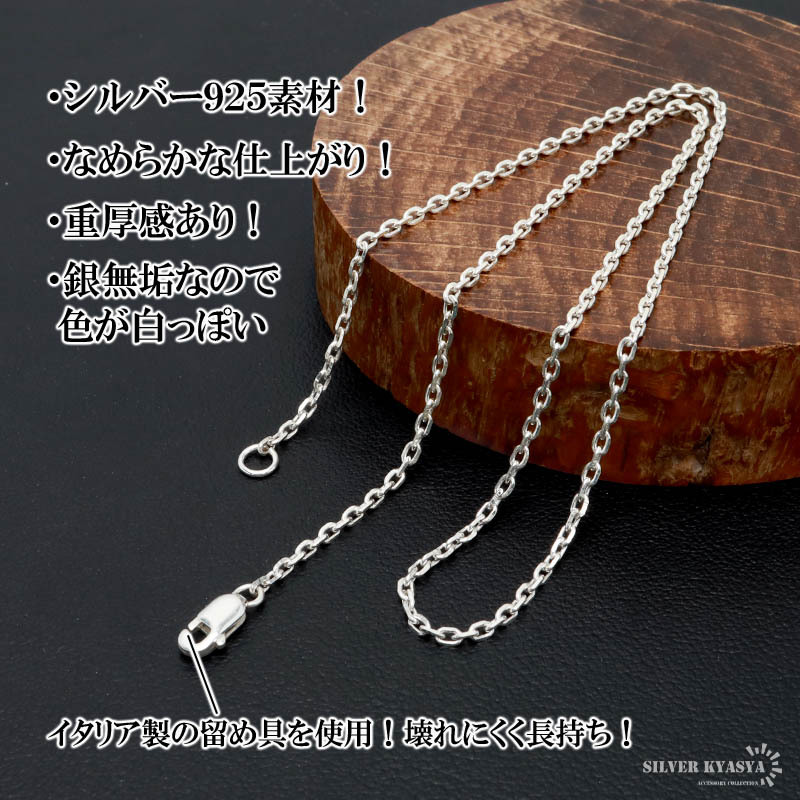 シルバー925 あずきチェーン ネックレス 幅2mm 45cm 4面カット ホワイト 細身 メンズ 男性 金属アレルギー対応