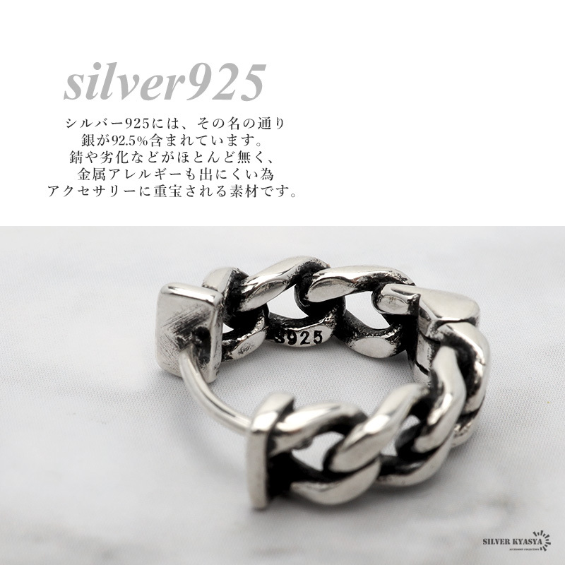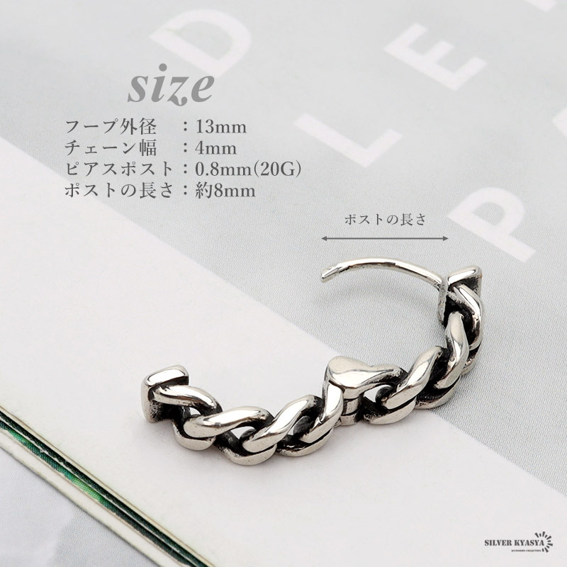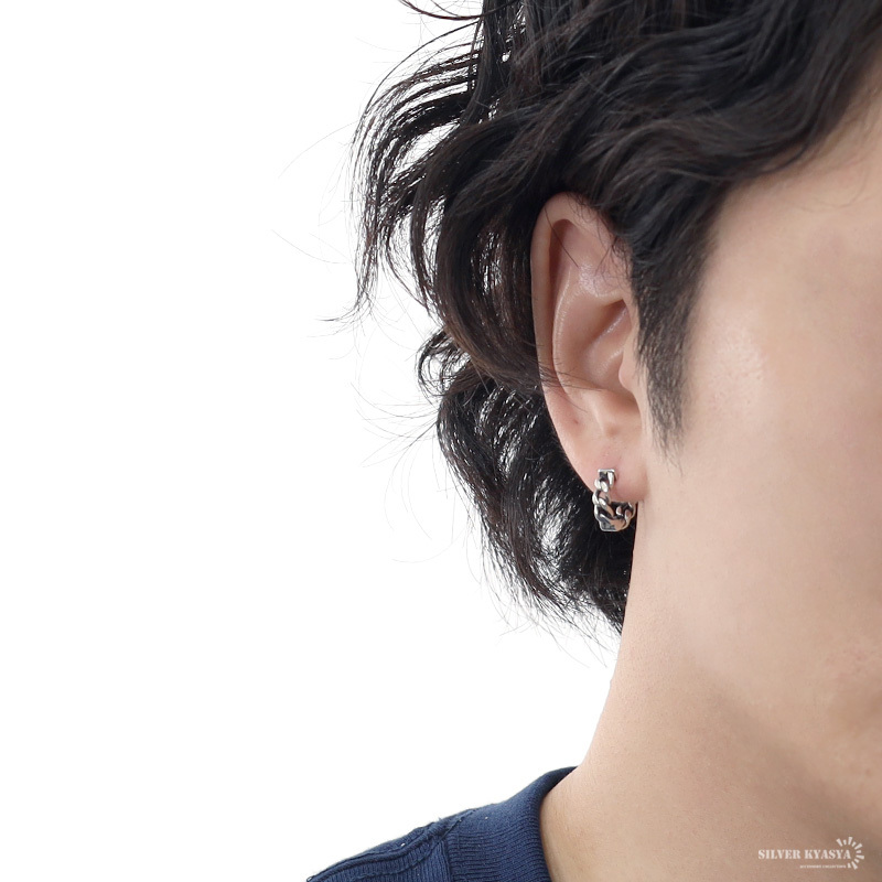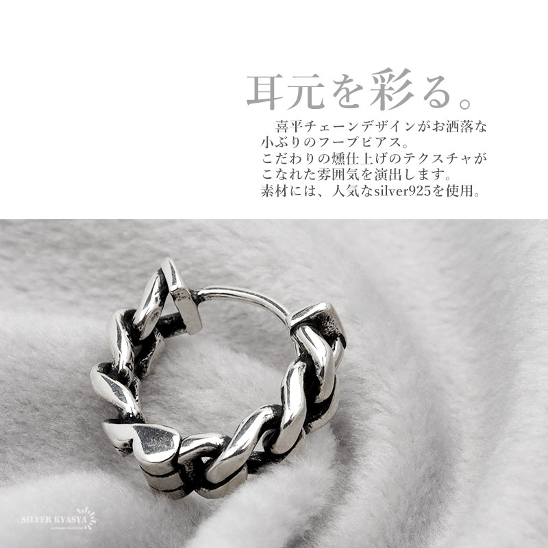ピアス フープピアス シルバー925 メンズ レディース 喜平チェーン 喜平 燻銀 Sサイズ シルバー 片耳用 金属アレルギー対応