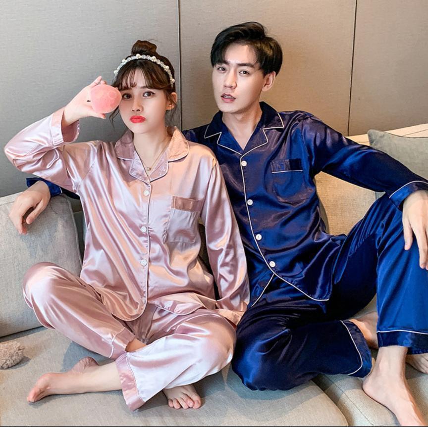 光沢のあるサテン生地で、上品さとエレガンスを演出。ペアパジャマとしてはもちろん、ルームウェアとしてもおしゃれに着こなせます。