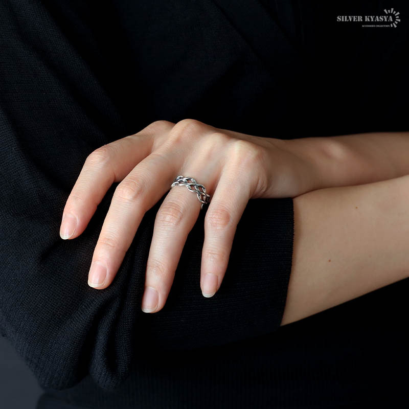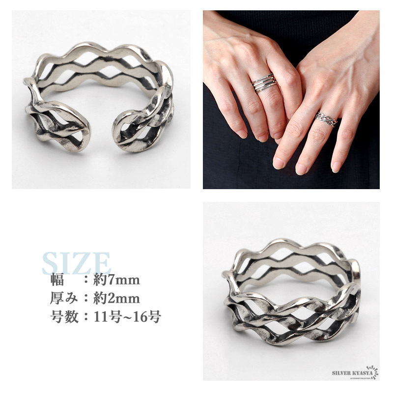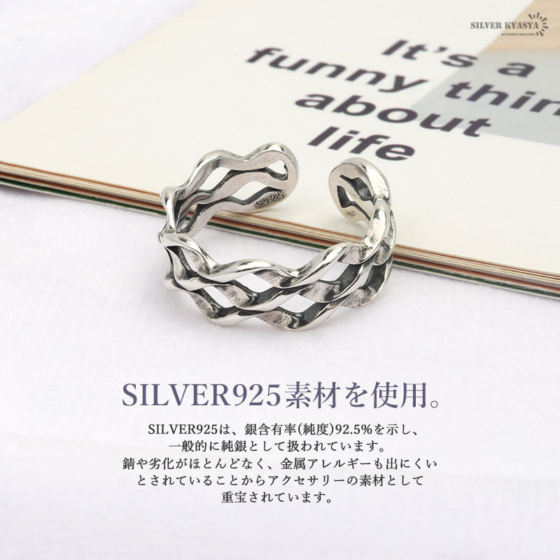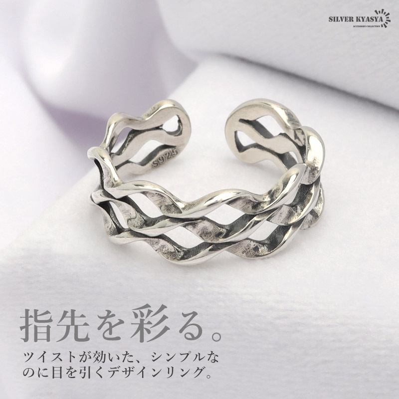 シルバー925 リング レディース シルバー ツイスト ねじり ウェーブ フリーサイズ 金属アレルギー