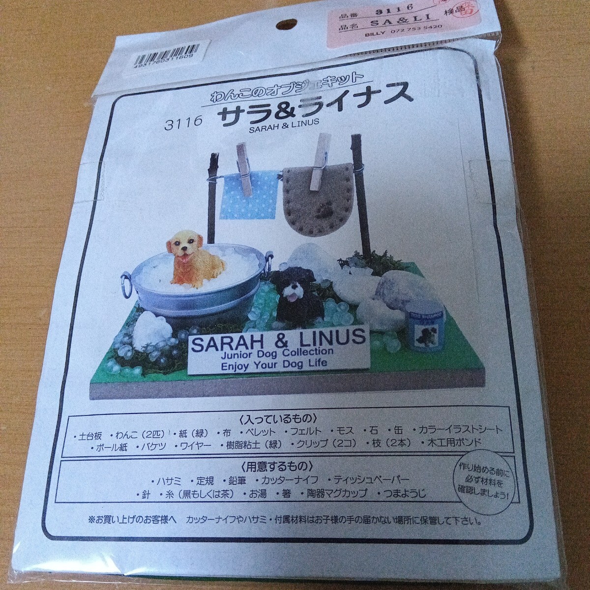 ミニチュアフィギュア コレクション ビリー 手作りドールハウスキット わんこのオブジェキット サラ&ライナス 犬 未使用未開封