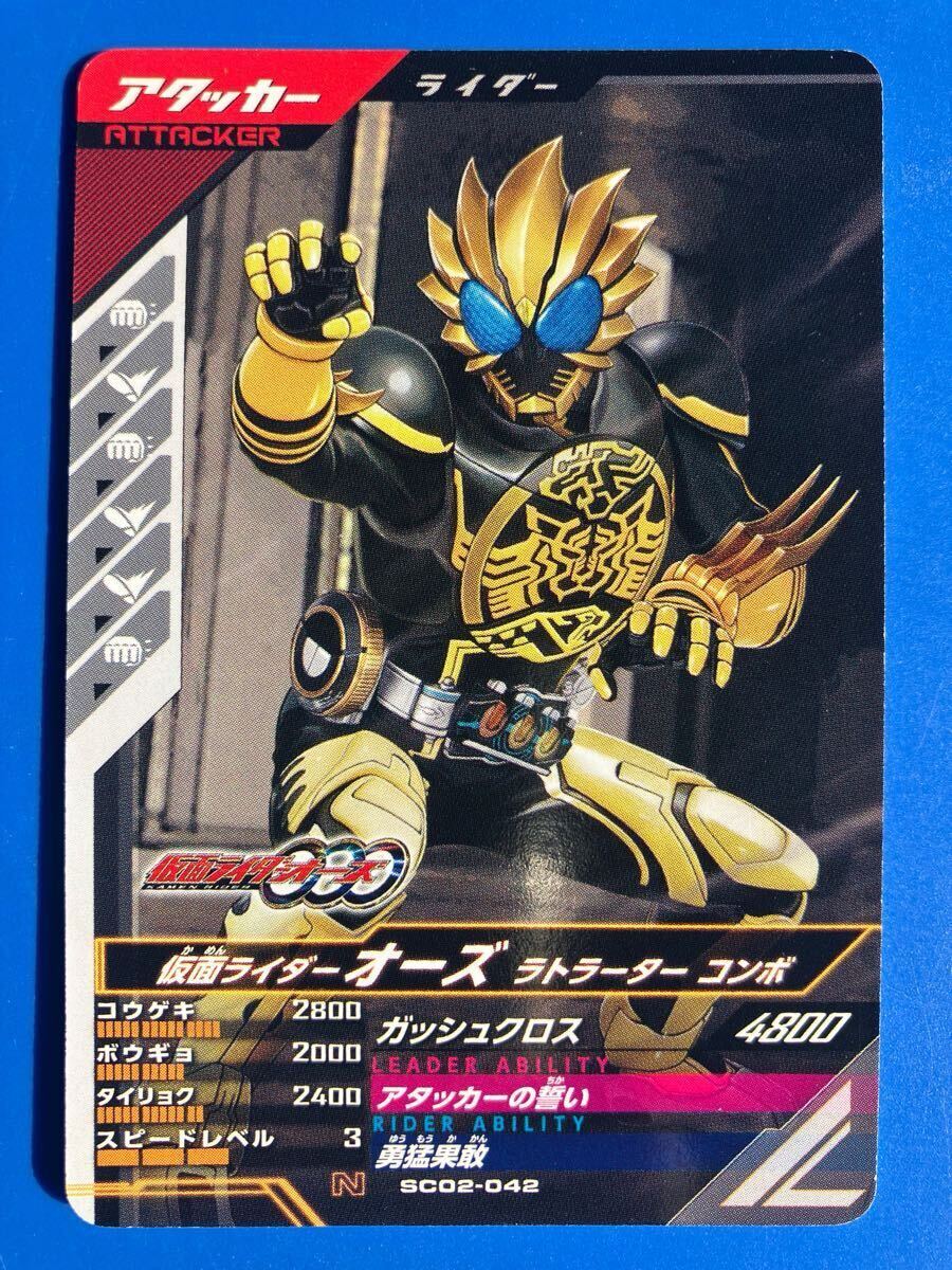 仮面ライダー、ガンバレジェンズの第SC02弾から、No.042、アタッカーカード《仮面ライダーオーズ・ラトラーターコンボ》の登場です。発送は、普通郵便を利用します。(特にご希望のない場合)おとりまとめも可能ですが、送料に変動する場合がございます。また、送料のご請求は、自宅での計量を基準にご請求させていただいておりますので、実際の金額と差異が出る場合もございます。予めご了承ください。他にも多数出品中です。まとめてこの機会にいかがでしょうか?ご質問お待ちしております。
