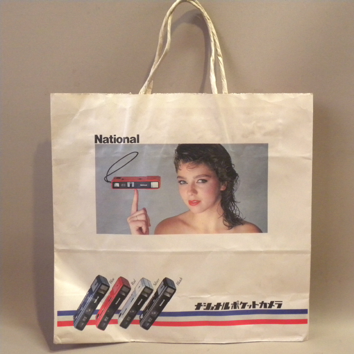1970年代当時物、松下電器の「ナショナル ポケットカメラ」紙袋です。サイズは縦約31cm、横約32cmです。