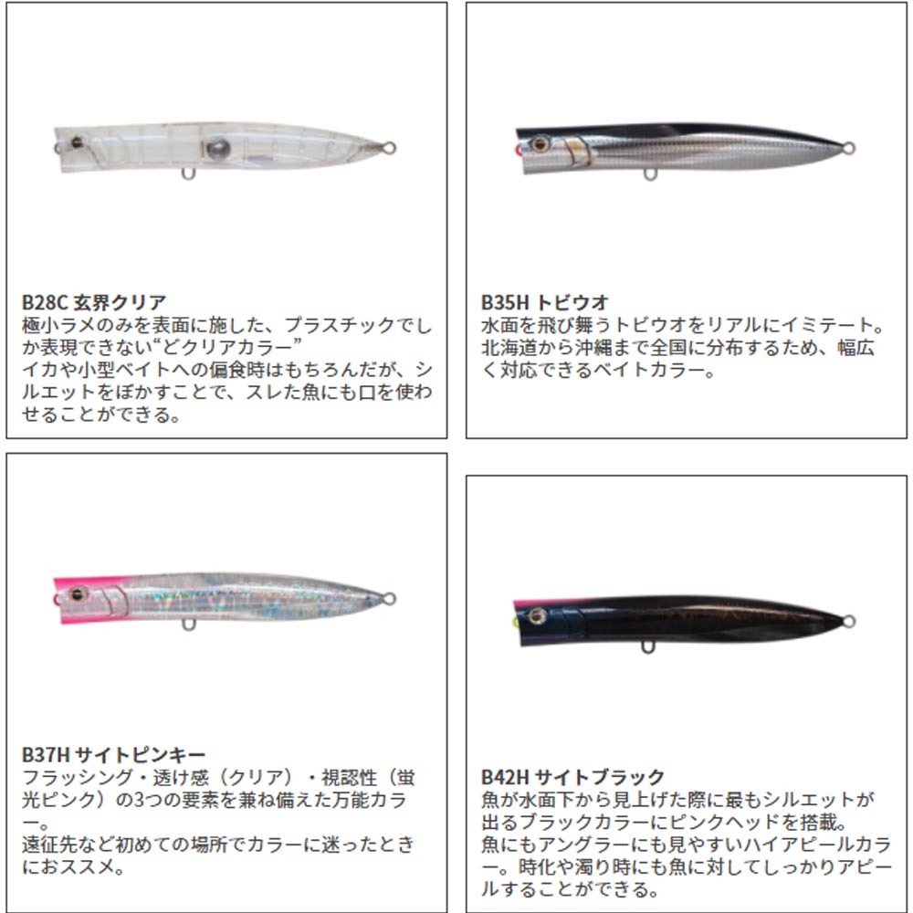 また、魚がスレてしまうような過度なアピールを抑えた小口径カップの採用により、従来のようなポッピング用の専用タックルを必要とせず、体力消費も最小限に抑えている。