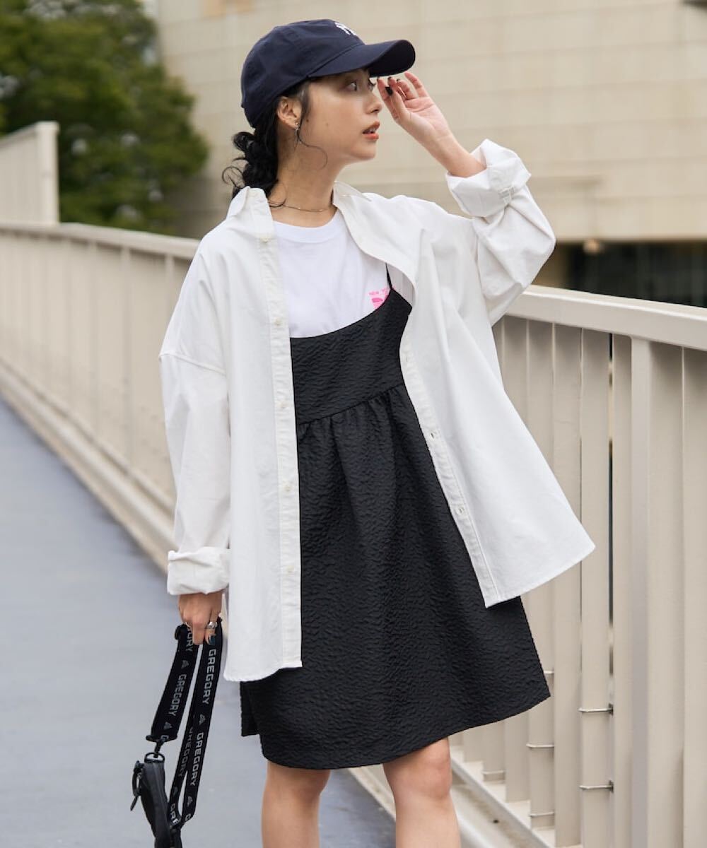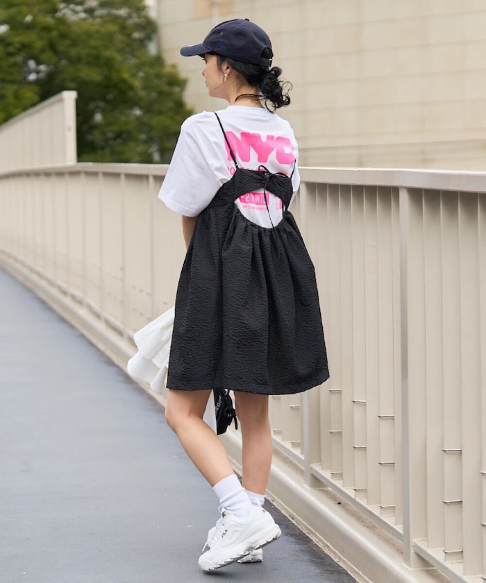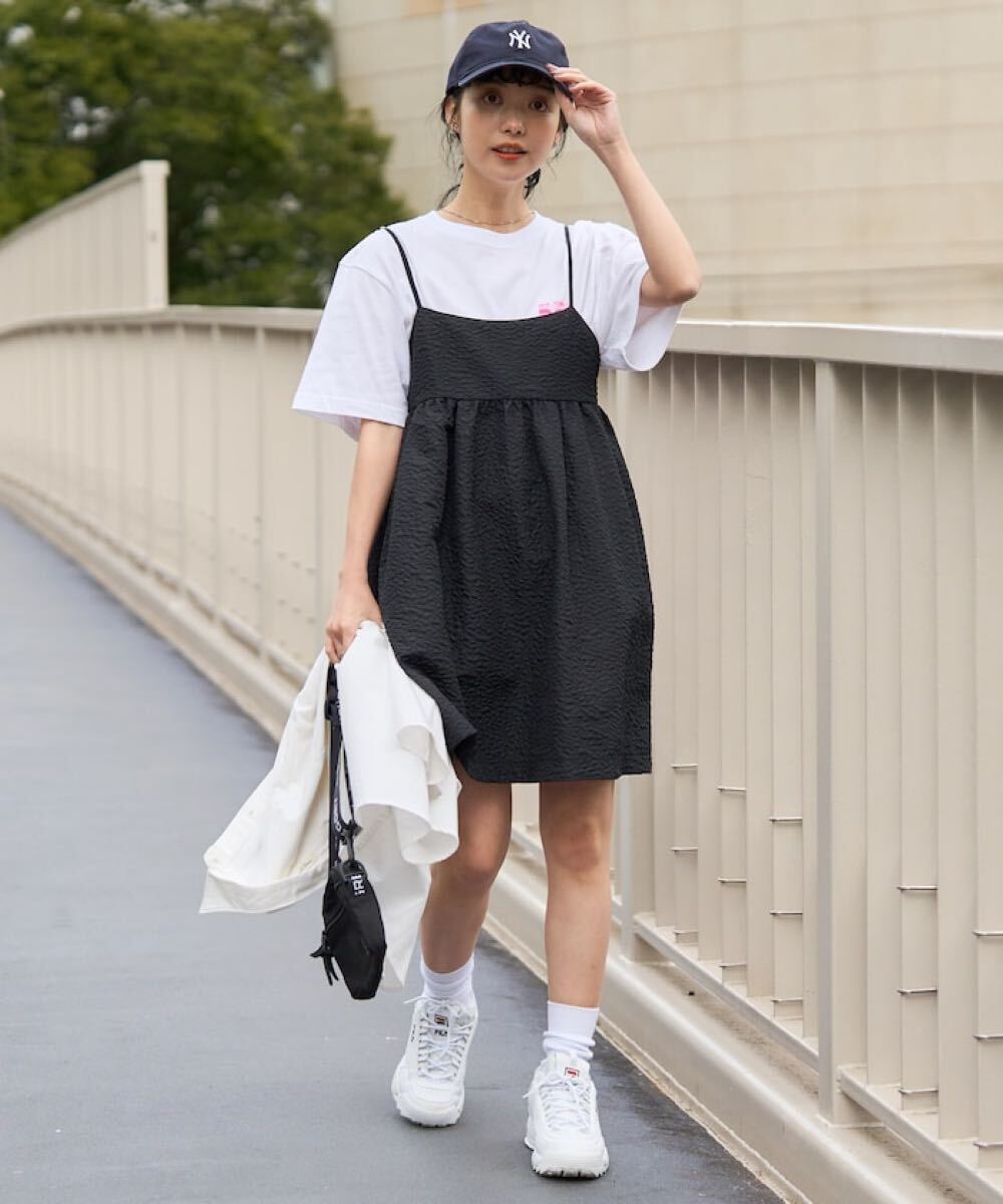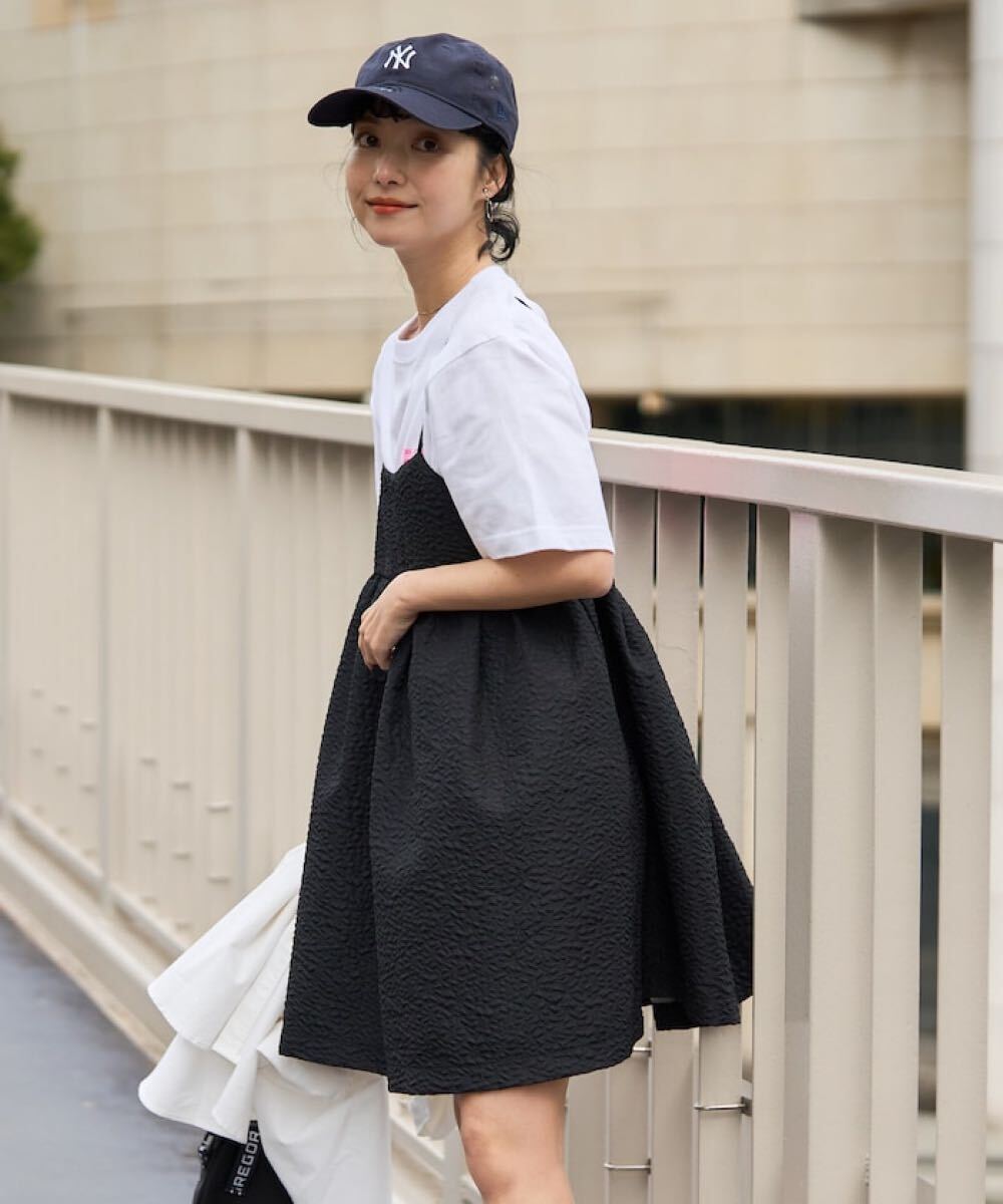 そのままフェミニンに着るのはもちろん、あえてカジュアルなスニーカーやキャップで外すスタイルもおすすめです。
