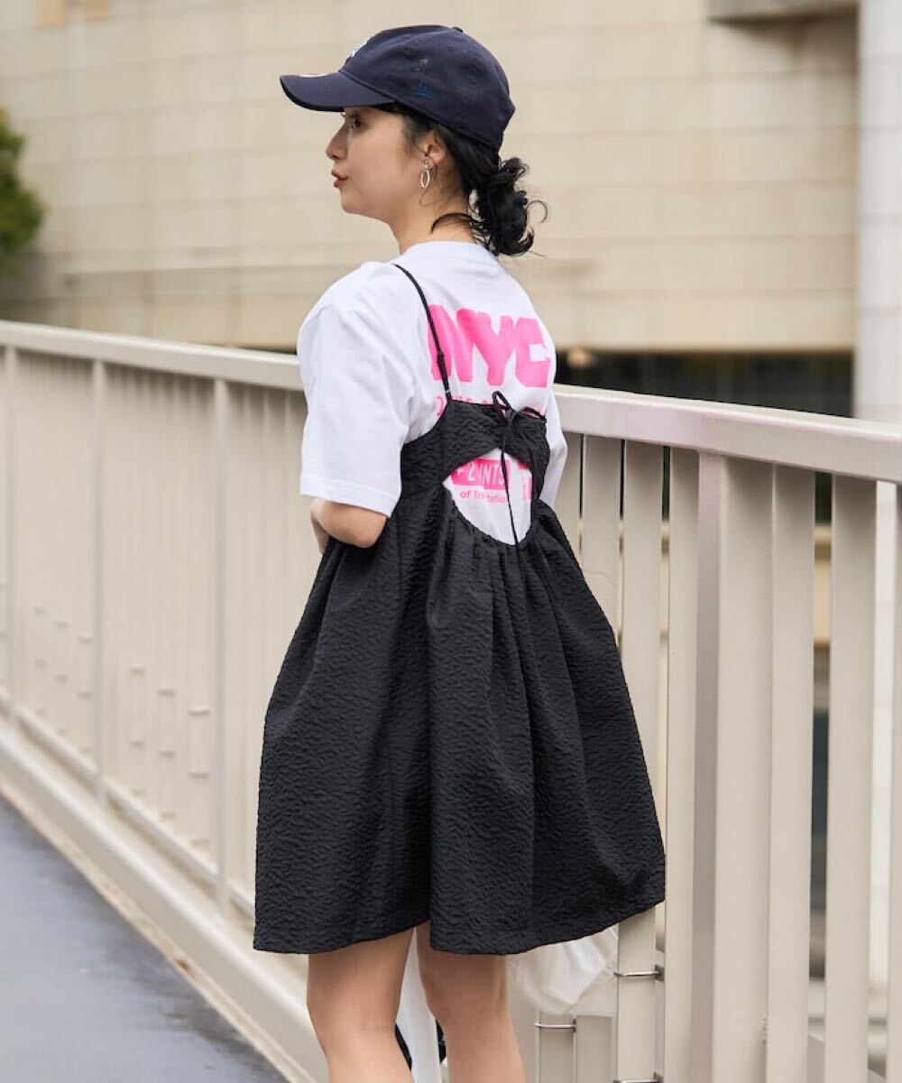 凹凸感ある素材で目を惹くミニキャミワンピース