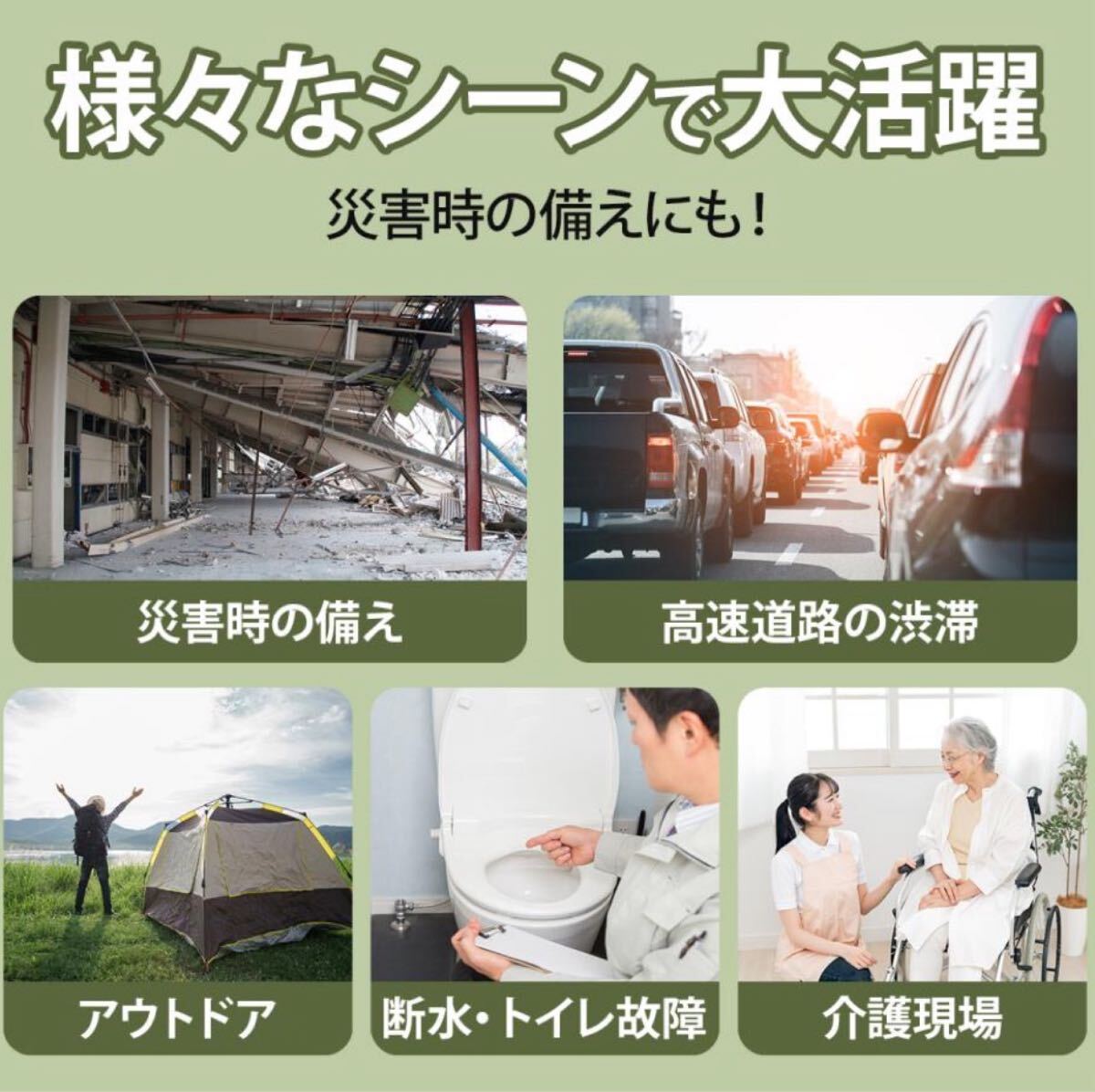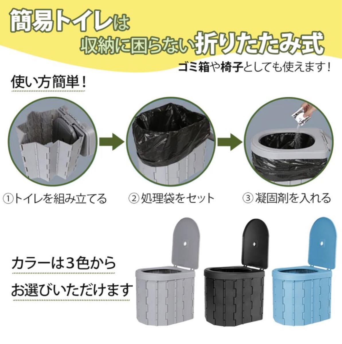 災害時やアウトドア、車中泊など、トイレが確保できない状況でも、この災害用簡易トイレセットがあれば安心です。