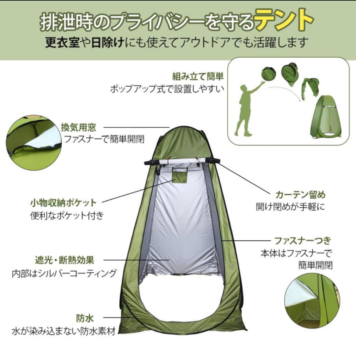 キャンプやバーベキュー、車中泊でのトイレ問題を解消。コンパクトに収納でき、持ち運びも簡単。使いたい時にサッと展開できる便利さが魅力です。
