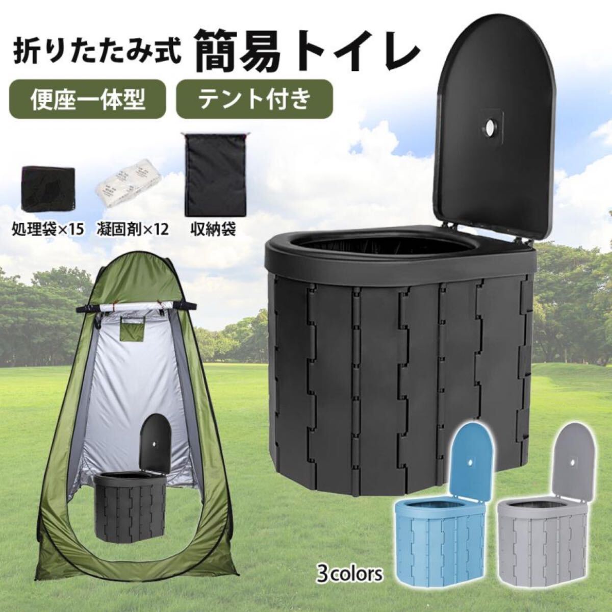 非常時もアウトドアも安心!災害用簡易トイレ+プライバシーテントの2点セット