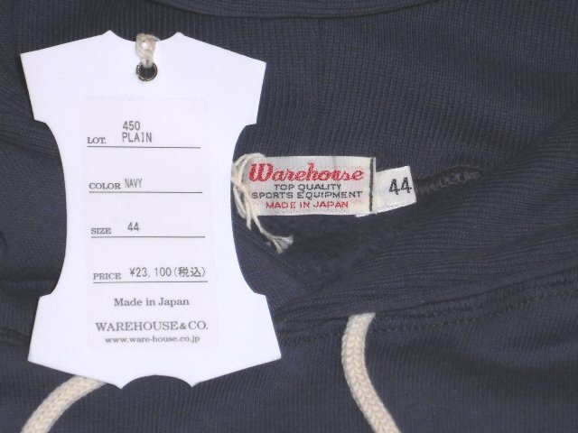 25 ウエアハウス 450 ネイビー ナスコン 44 無地 フード スウェット パーカー