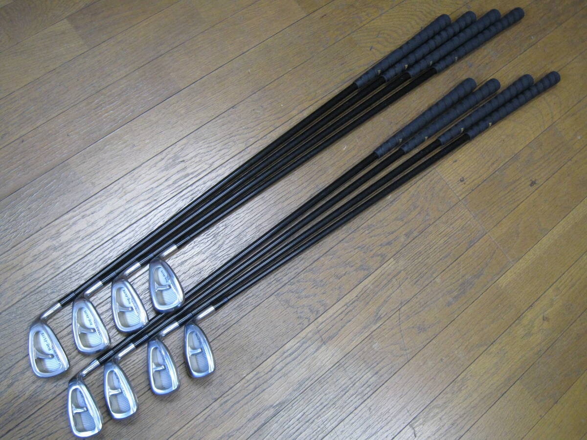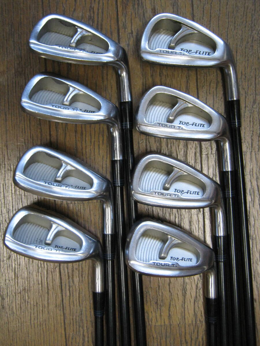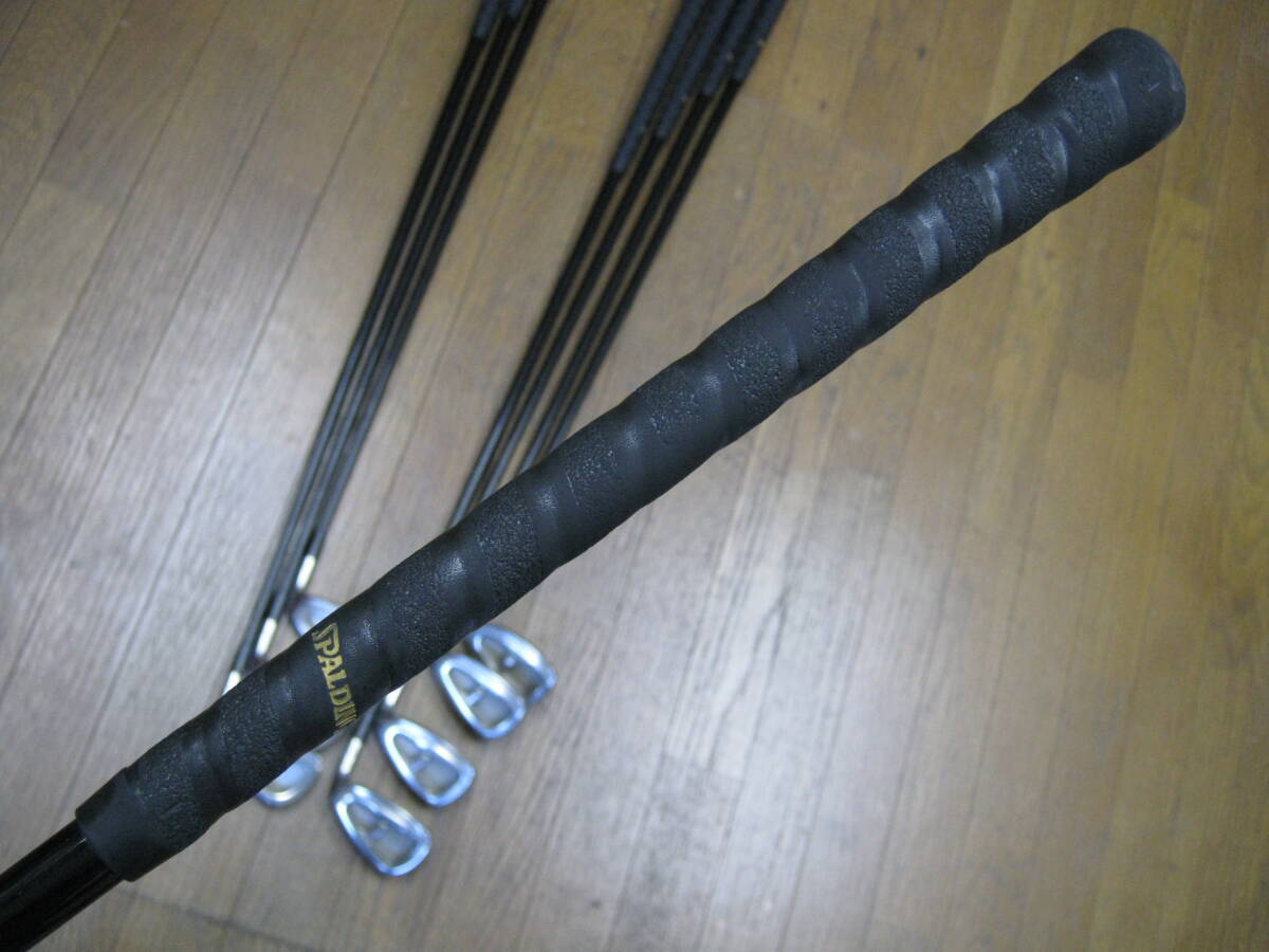 稀少品!SPALDING TOP-FLITE TOUR Ti アイアン8本セット 番手:5I~9I、P、M、S シャフト : スポルディング オリジナル カーボンシャフト フレックス : 不明 スポルディング オリジナル サンドラップ ラバーグリップ シャフトに汚れや傷が有ります。 グリップに汚れ、擦り減り、テカリ、劣化の症状が有ります。 写真で判断しご購入お願いします。