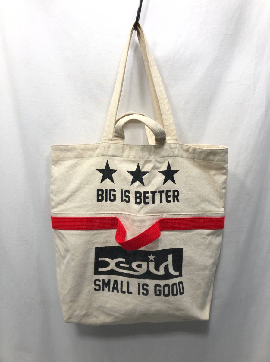 エックスガール X-girl 2way トートバッグ ハンドバッグ 生成り アイボリー B21
