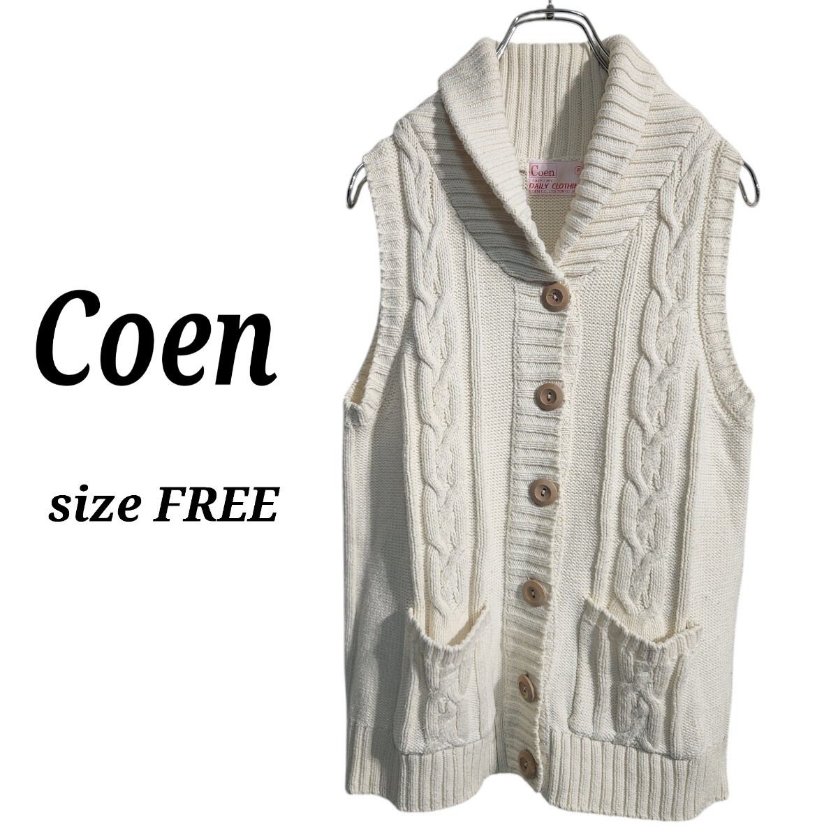 Coen コーエン コットン ケーブルニット ベスト ジレ レディース フリーサイズ ゆるダボ オーバーサイズ ビッグシルエット 90s