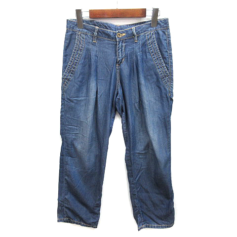 アーバンリサーチ URBAN RESEARCH テンセル デニム クロップド パンツ タック ブルー 36 レディース