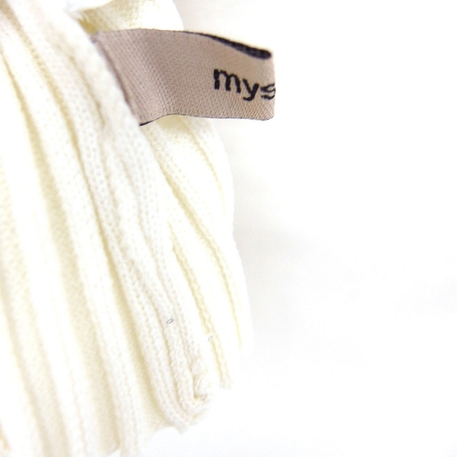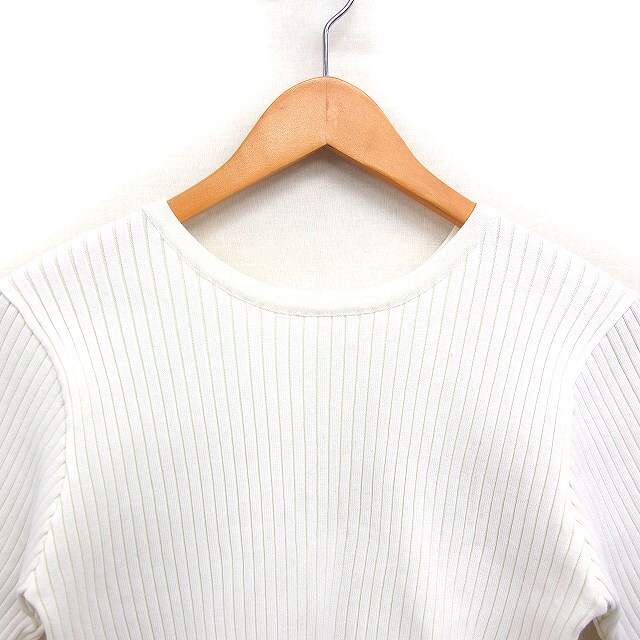ミスティック mystic バックスリット 半袖 リブ ニット セーター ショート丈 半袖 丸首 無地 F オフホワイト 白 /FT4 レディース