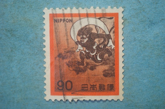 動植物国宝図案切手 使用済 風神 90円 朱 3