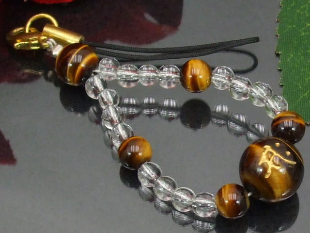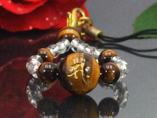 守り本尊梵字 タイガーアイ&水晶 ストラップ