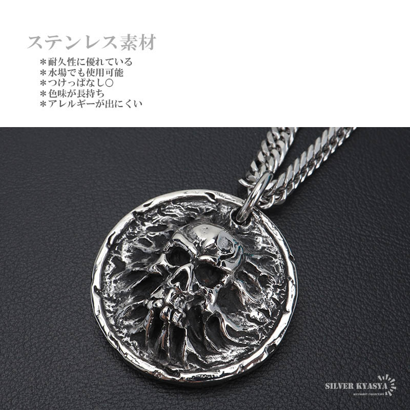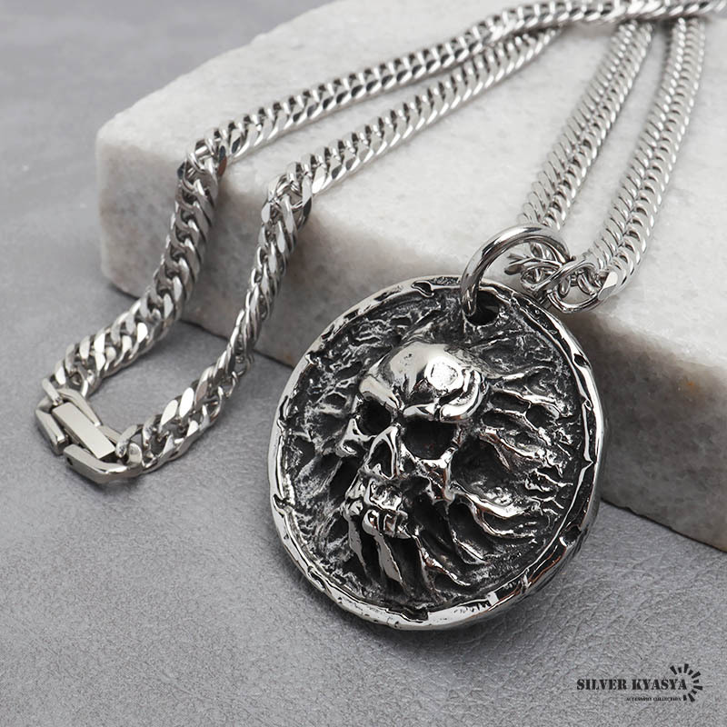 | 商品概要 | ■ITEM DETAIL ユニークなデザインのスカルが迫力たっぷりのネックレス。メタリックなボディに燻し風加工が深みのある仕上がりに。 ■ステンレス素材を使用 金属部分は頑丈なことで知られるステンレス素材を採用。耐久性はもちろん耐水性も高く水場での着用も可能。金属アレルギーも出にくいとされている金属です。 |