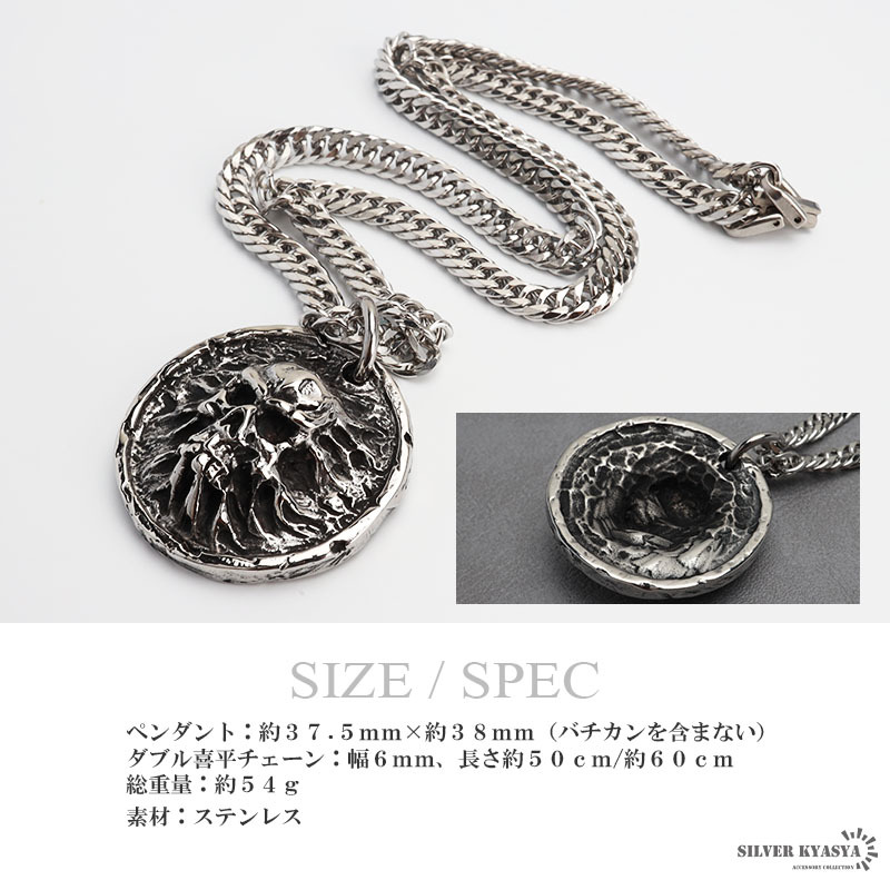 | サイズ | ペンダント:約37.5mm×約38mm(バチカンを含まない) ダブル喜平チェーン:幅6mm、長さ50cm/60cm 総重量:約54g |