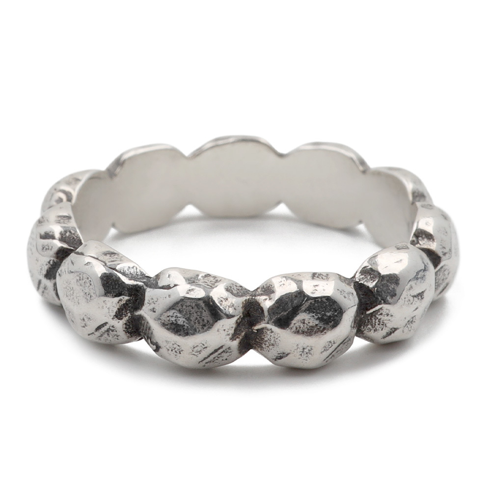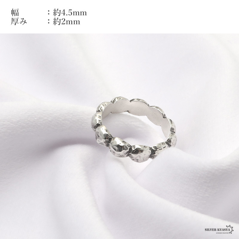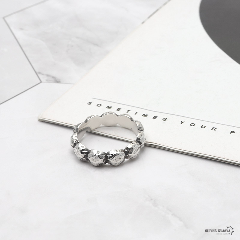 岩石のような無骨な雰囲気がクールなリング。シンプルだけど、これひとつで存在感を放つアイテム。素材には、人気のSILVER925を使用。サビや劣化がほとんどなく、金属アレルギーも出にくい。