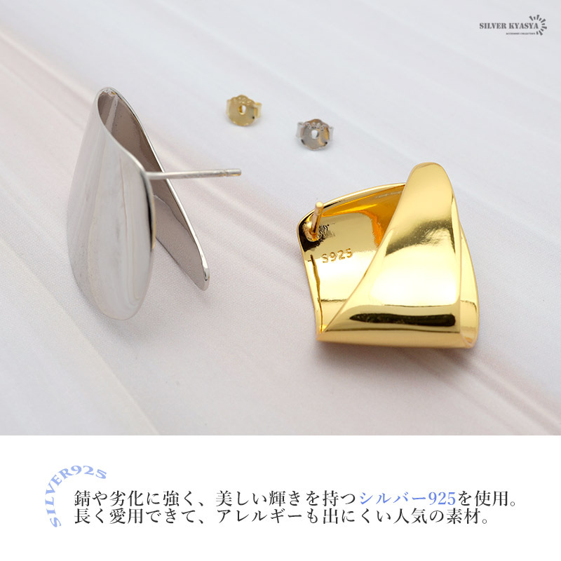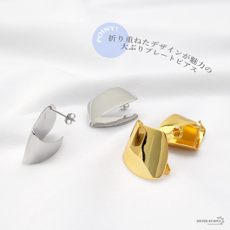 ■折り重ねたデザインが魅力の大ぶりプレートピアス