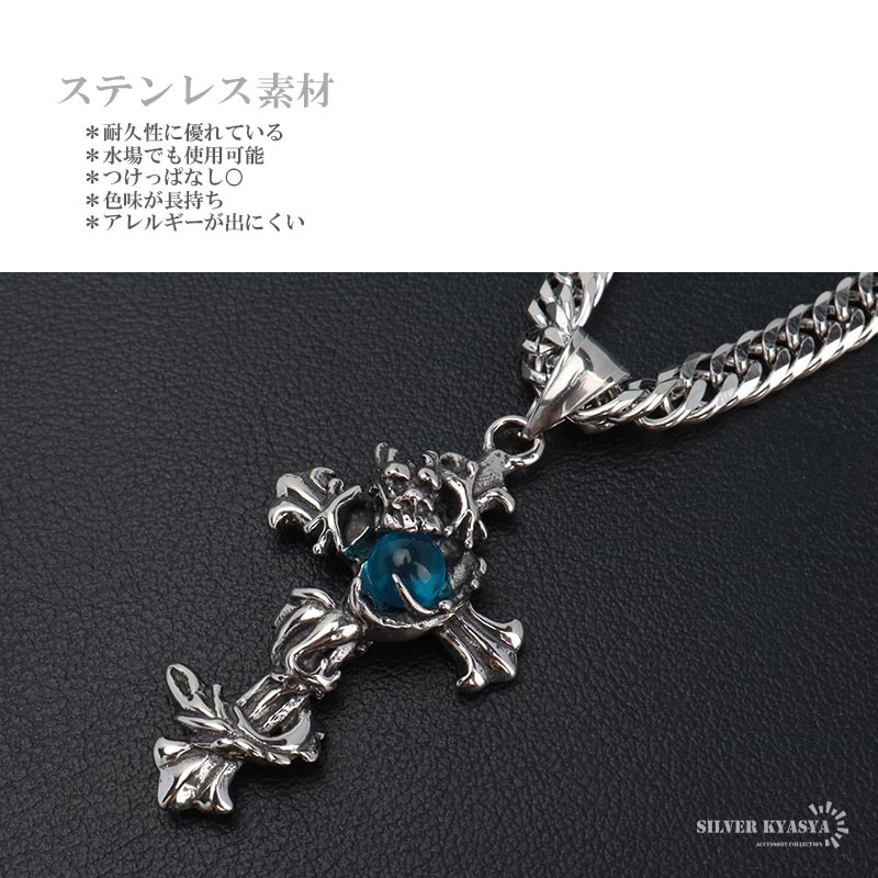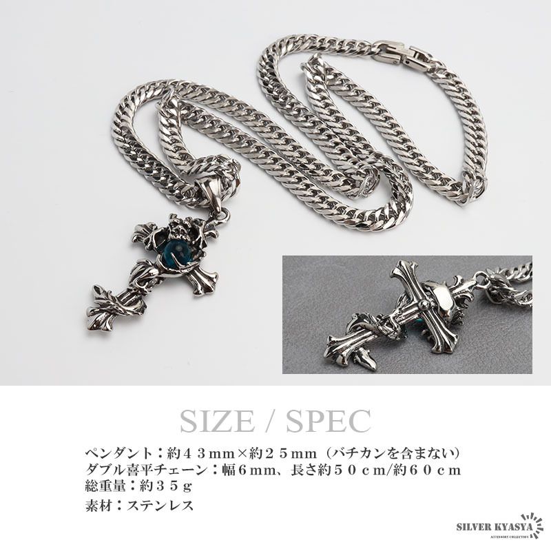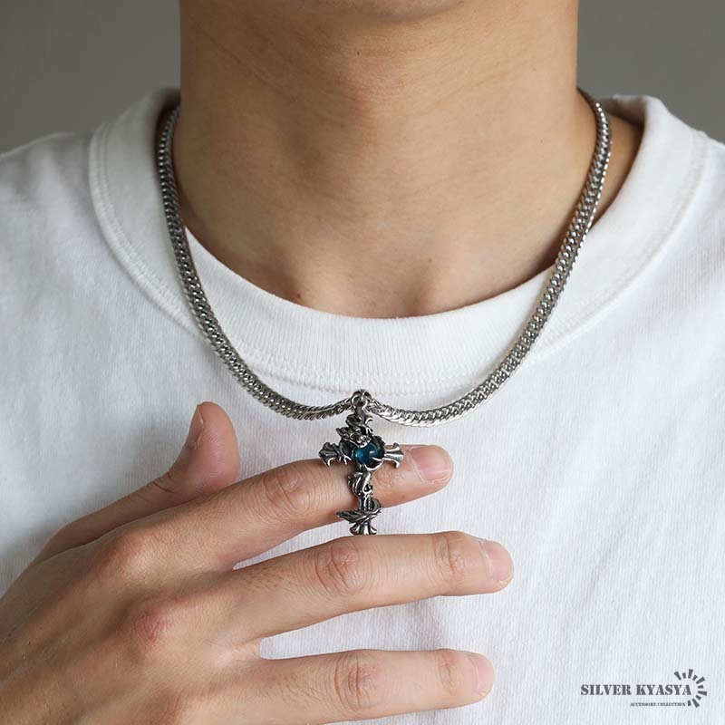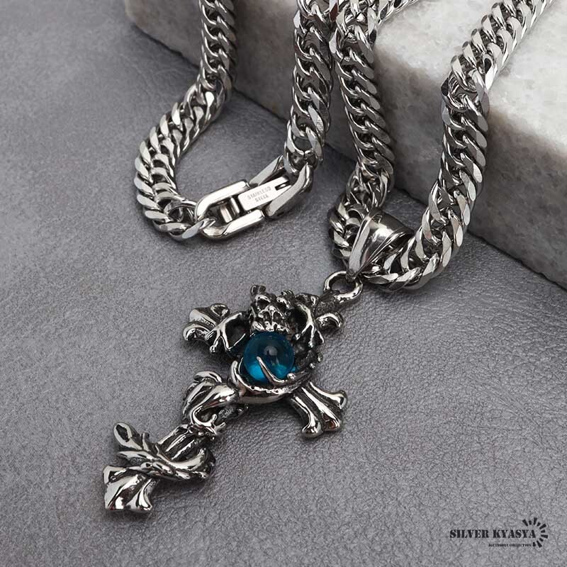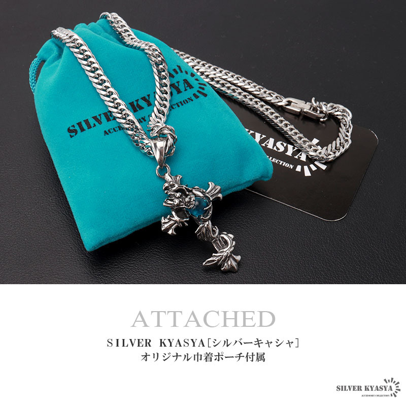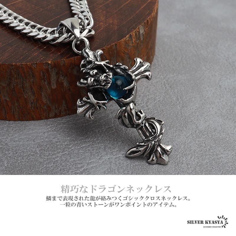 | 商品概要 | ■精巧のドラゴンネックレス 鱗まで表現された龍が絡みつくゴシッククロスネックレス。一粒の青いストーンがワンポイントのアイテム。 ■ステンレス素材を使用 金属部分は頑丈なことで知られるステンレス素材を採用。耐久性はもちろん耐水性も高く水場での着用も可能。金属アレルギーも出にくいとされている金属です。 |