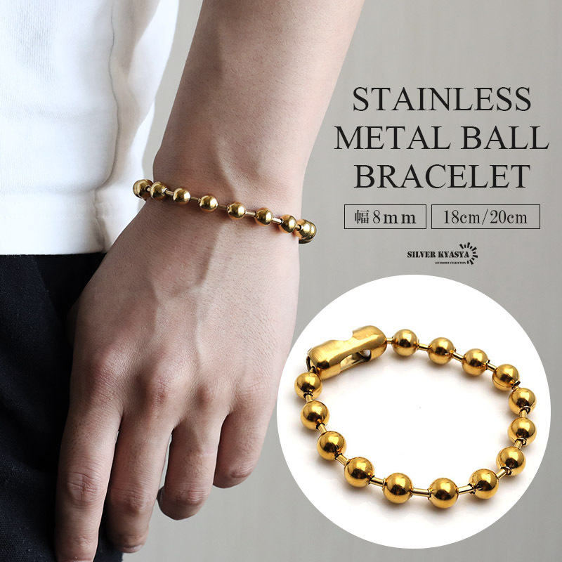 幅8mmのラージサイズのボールを使用した、シンプルなボールチェーンブレスレットです。