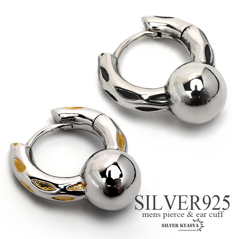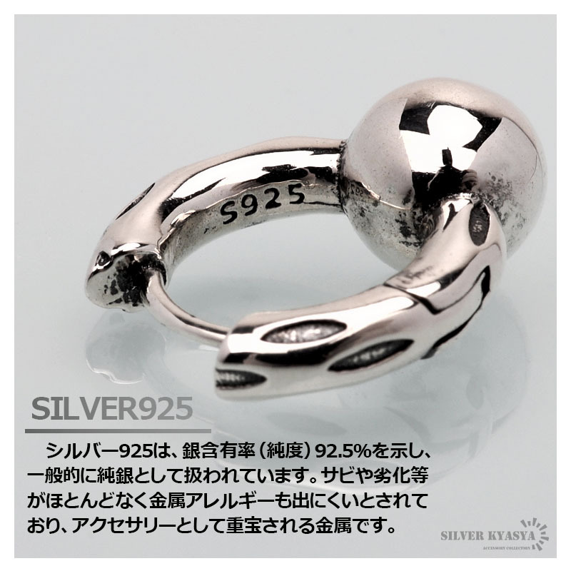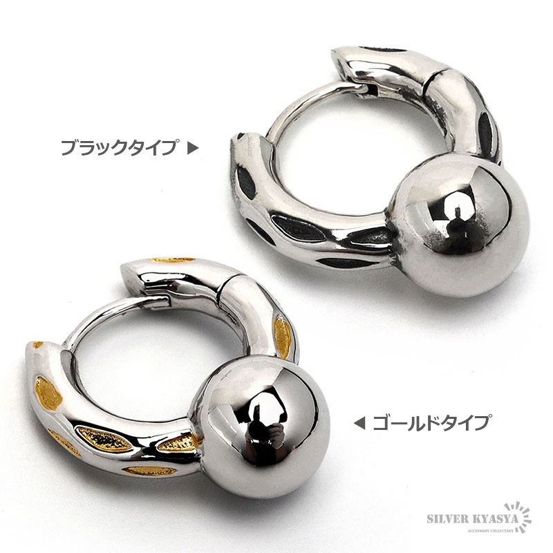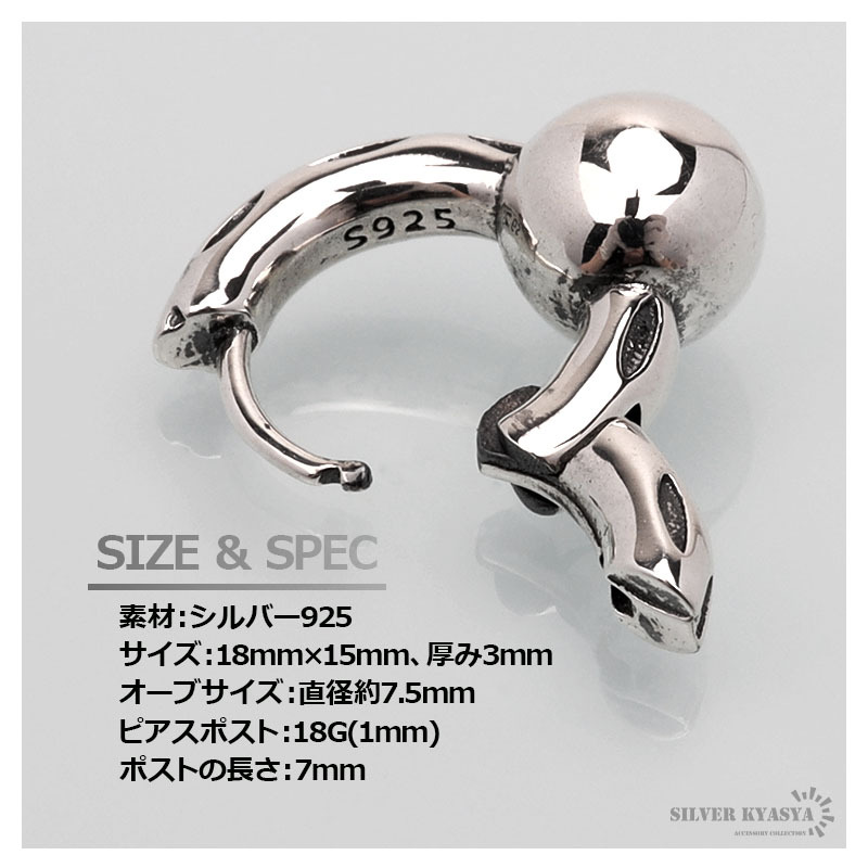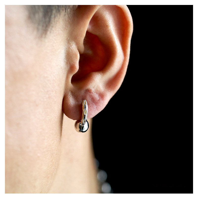 しっかりとした厚みのあるシルバーフープにサイズ感溢れるオーブをセットしたフープピアス。フープにはユニークな模様を入れたさりげないおしゃれ感の光るアイテム。オーブは中空仕様で重厚な見た目ながらも重たくありません。