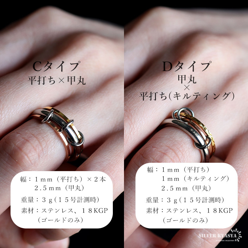 Cタイプ:幅1mm(平打ち)×2本、2.5mm(甲丸)、重量3g(15号計測)
