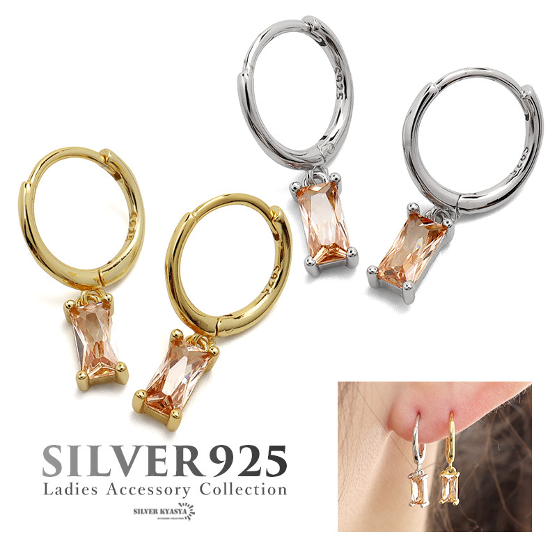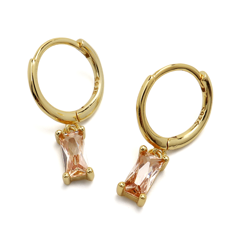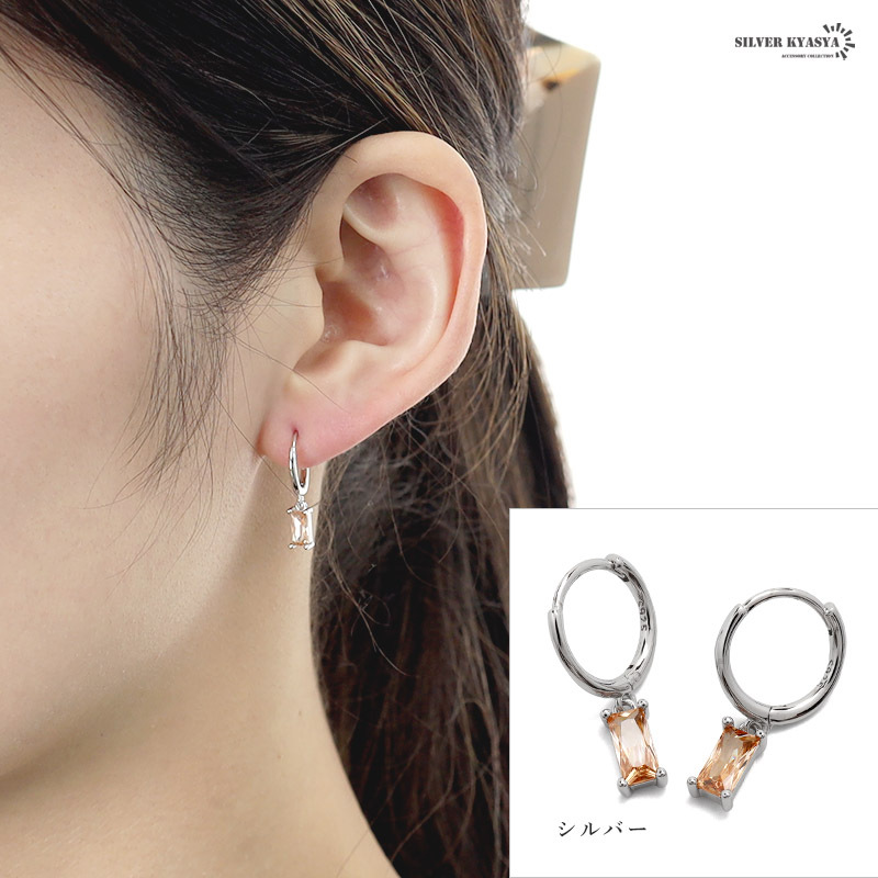 スクエア型のキュービックジルコニアが揺れるドロップピアス。透明感たっぷりのオレンジのストーンが明るくフレッシュな気分にさせてくれます。