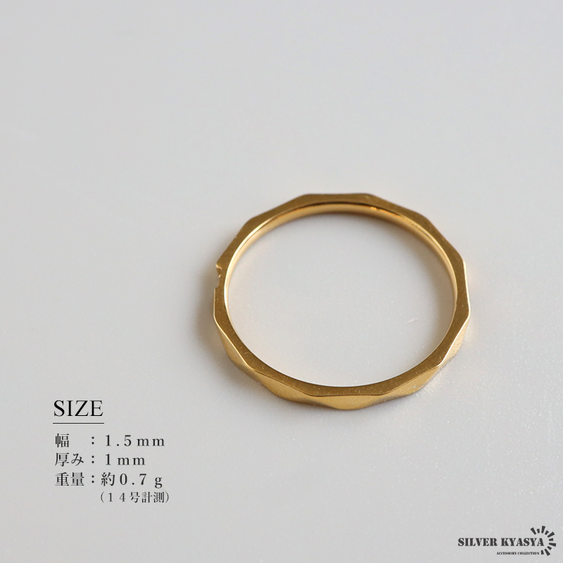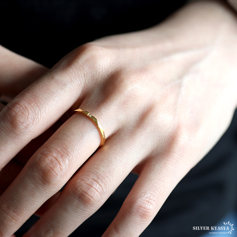 小粒のジルコニアをセットした上品なゴールドリング。角の取れた緩やかなダイヤモンドカットが高級感を演出します。細身で重ね付けにもぴったりのアイテム。