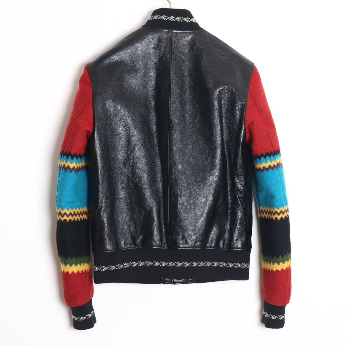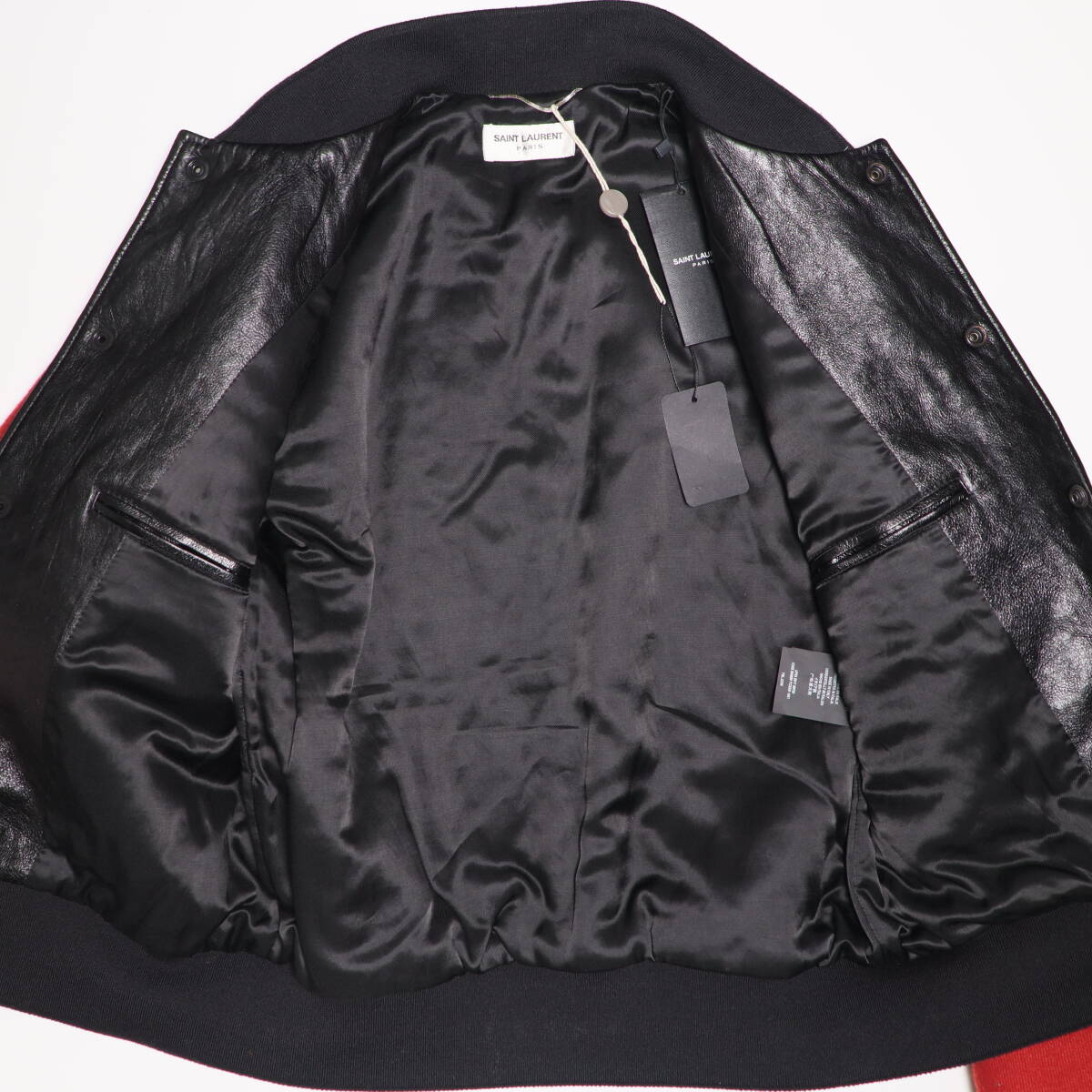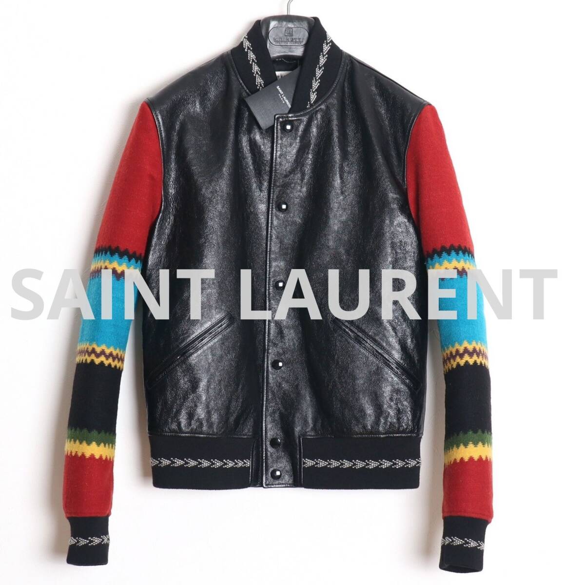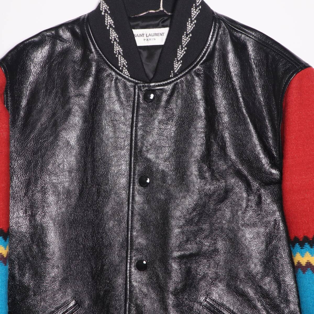 SAINT LAURENT PARIS SS18 Calf Skin & Peru Jacquard weave Varsity Jacket 44
