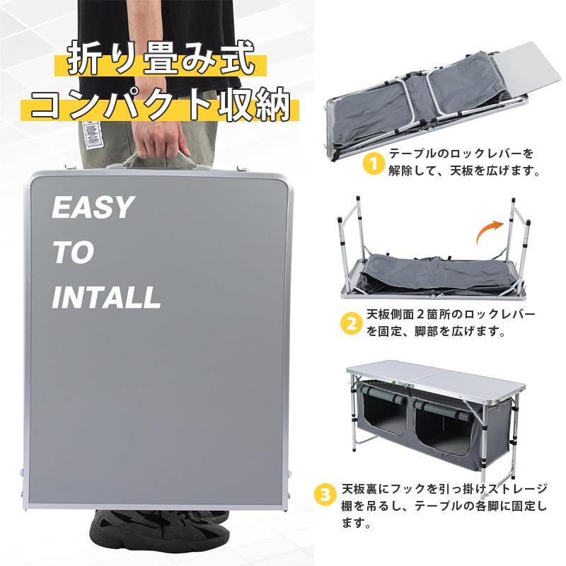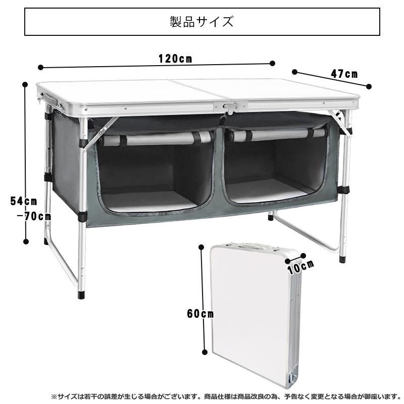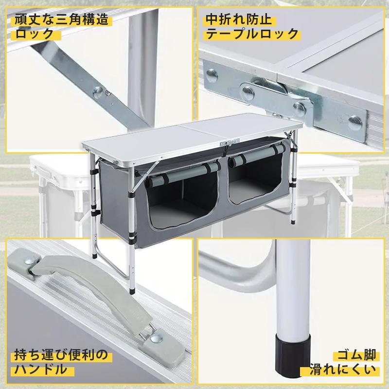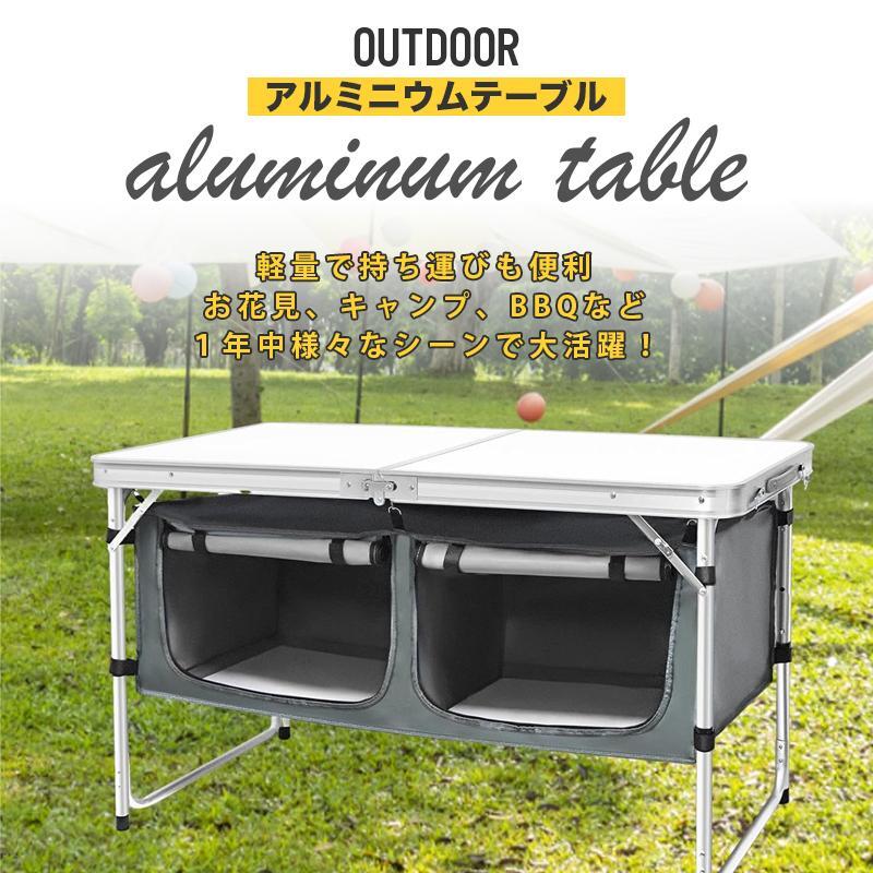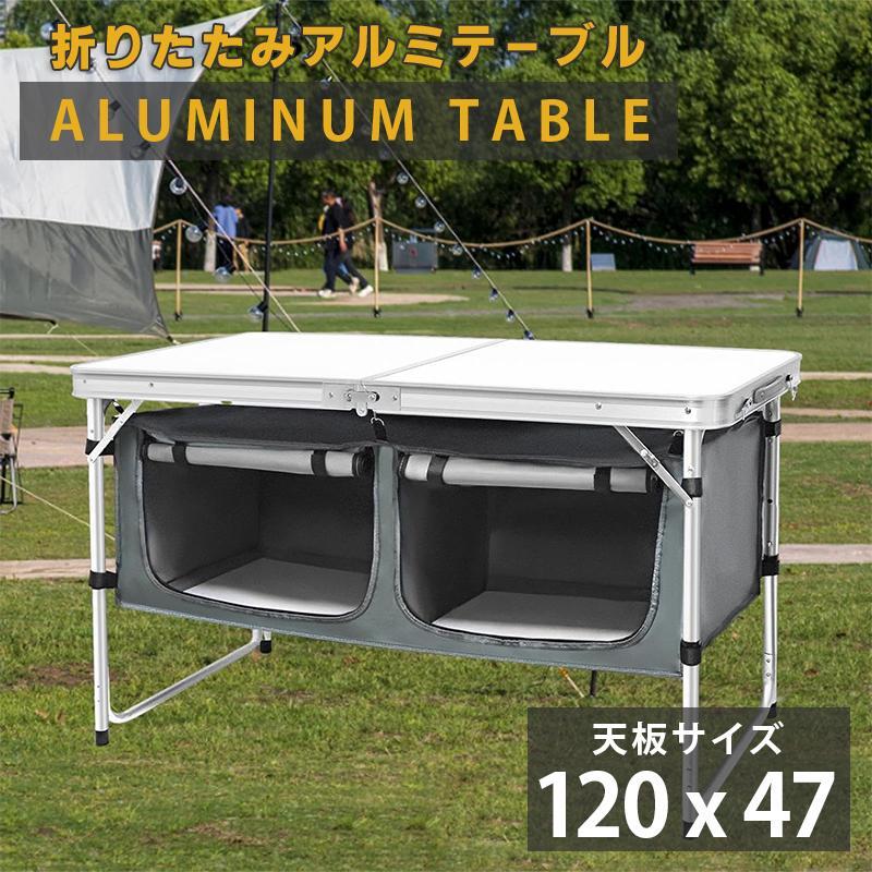 期間限定-最新アウトドアテーブル 折りたたみ 120cm 収納付き 高さ3段階調節 防水 ローテーブル アルミ レジャーテーブル 庭キャンプ