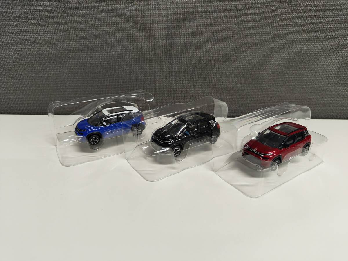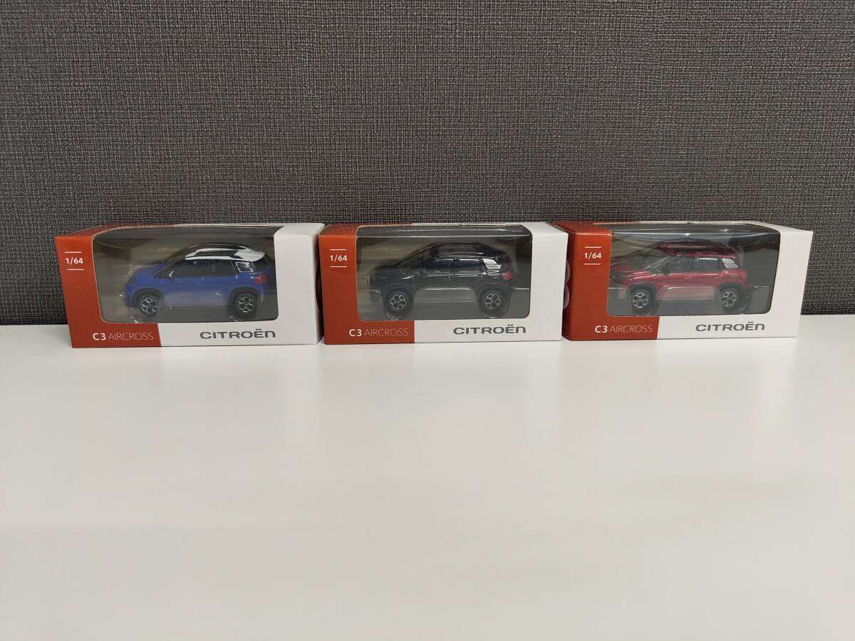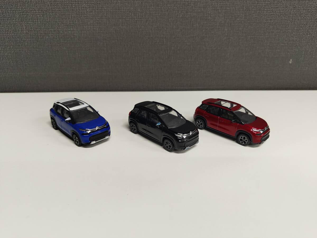 シトロエン C3エアクロス NOREV 1/64ミニカー 3種セットです。 C3 エアクロス 2021年~発売モデル(2代目後期) ・ブラック 1個 ・レッド 1個 ・ブルー 1個 コレクションにいかがでしょうか? ※撮影・確認の為に一度開封済みです。 ※長期在庫品の為、箱・ブリスターの日焼け、スレ傷、汚れ、凹み等がございます。 予めご了承ください。 |