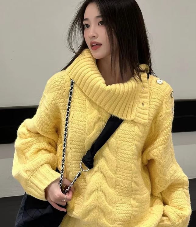 【XXLサイズ(日本サイズ)】女性のための厚くて暖かい黄色のセーター,ボタン付,韓国のファッション,シンプルで柔らかいプルオーバー,秋,冬