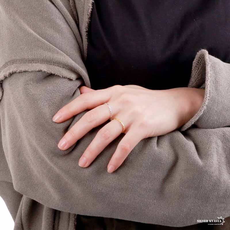 表面に、しわ加工を施した雰囲気のある極細リング。指先を綺麗に魅せてくれる万能アイテム。