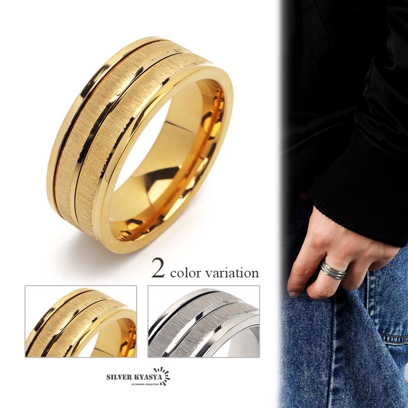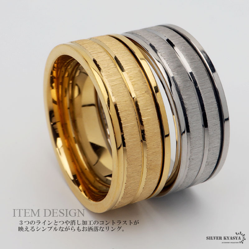 3つのラインとつや消し加工のコントラストが映えるシンプルながらもお洒落なリング。