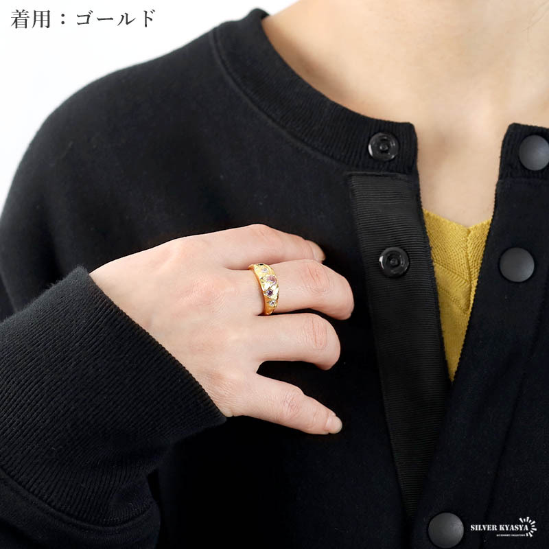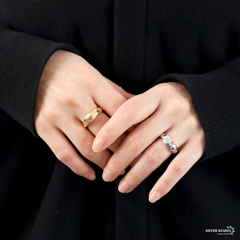 見て楽しくなるような、カラフルなリング。ぷっくりした丸みのあるフォルムが可愛い。