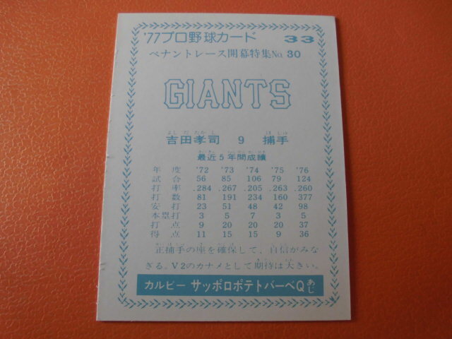 【極美品】カルビープロ野球カード◆77年 巨人 吉田 No.33
