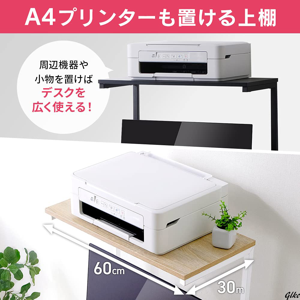 幅60×奥行42×高さ127cmのコンパクトな設計で、上棚にはA4サイズのプリンターも置け、