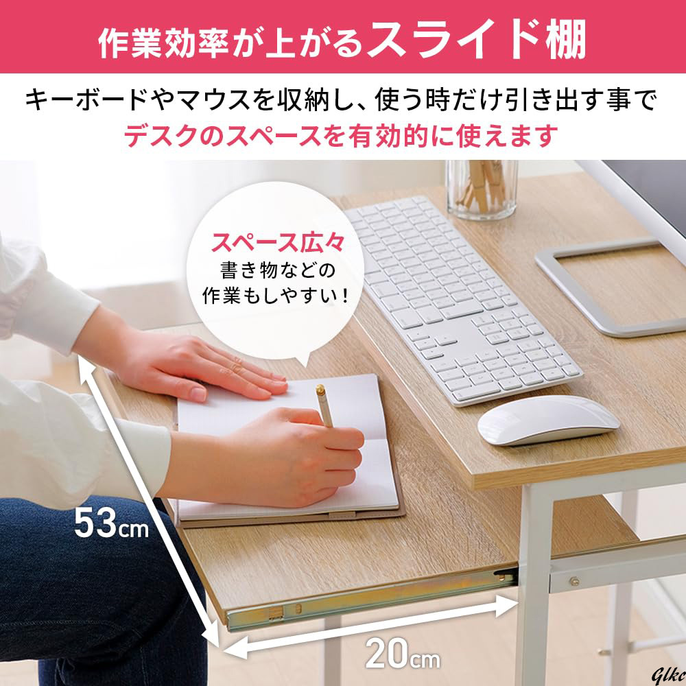 スライド棚を活用すれば、使うときだけ引き出してキーボードやマウスを収納でき、デスクをより効率的に使用可能です。