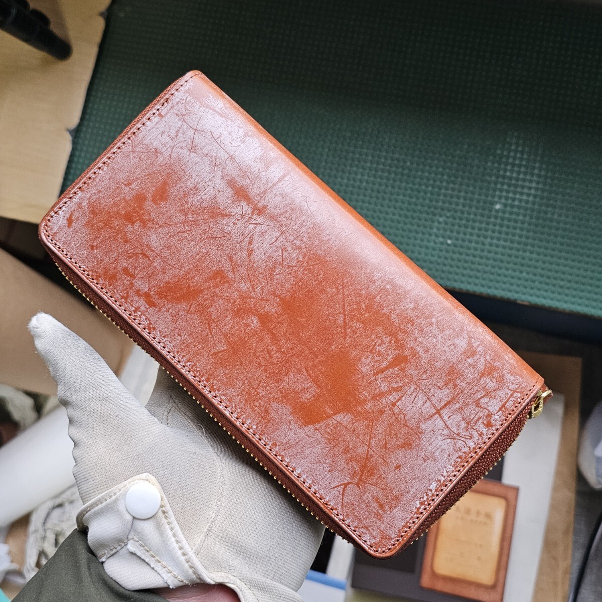 堅牢で耐久性のある革です。使用に伴い程よいやわらかさがでてきます。蝋を3ヶ月じっくり染み込ませることでつくられます。そのため白い蝋が最初から革を覆っています。特有の良いかおりも魅力です。