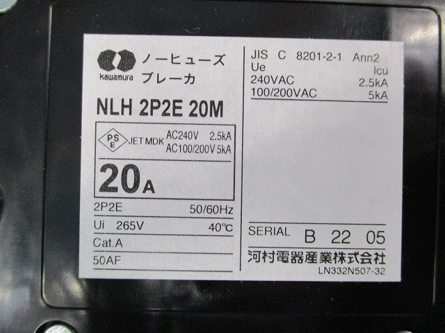 ノーヒューズブレーカ2P2E20A 河村電器産業 NLH2P2E20M