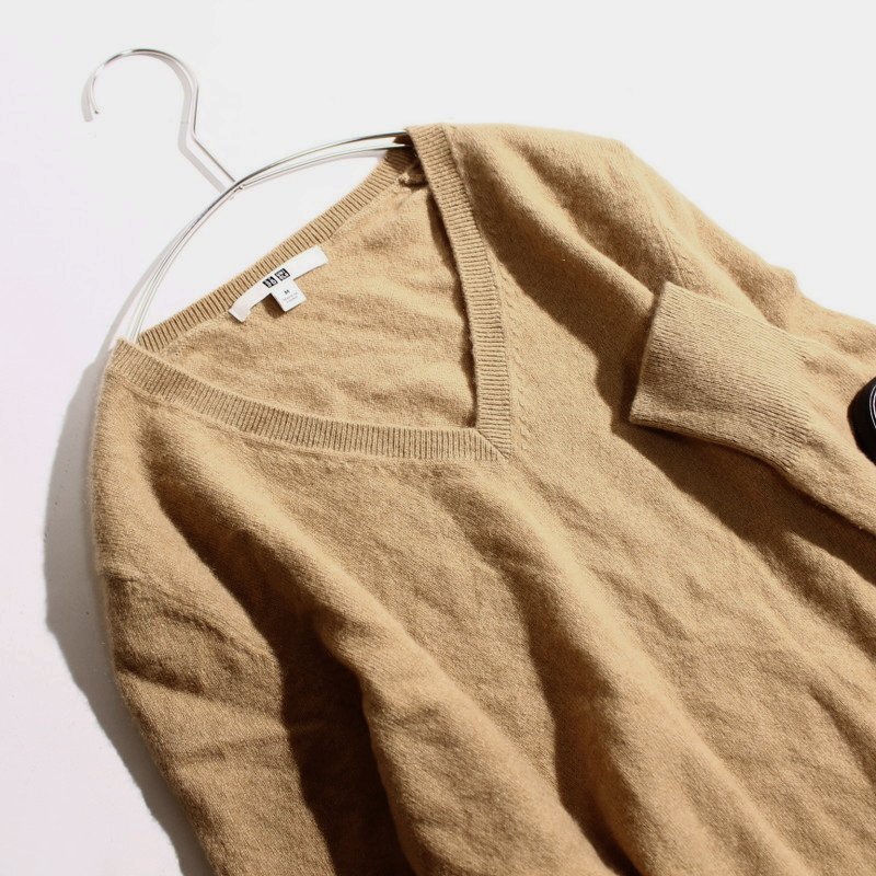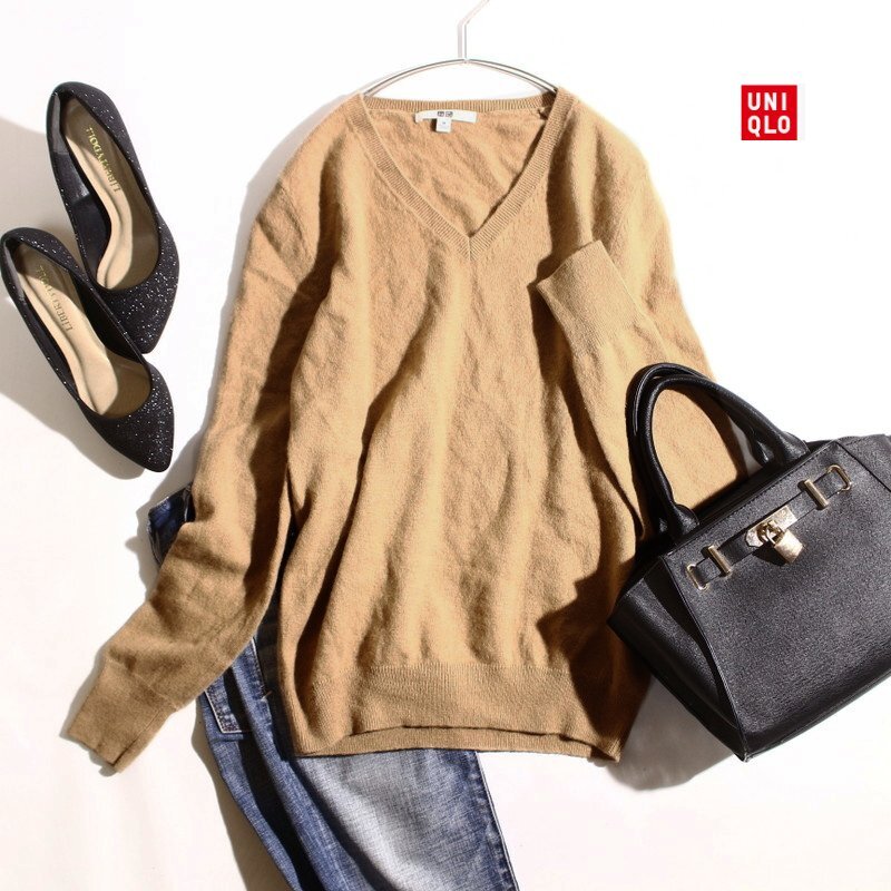 美品 ユニクロ UNIQLO レディース Vネック カシミヤ100% ニットセーター カシミヤニット M ベージュ