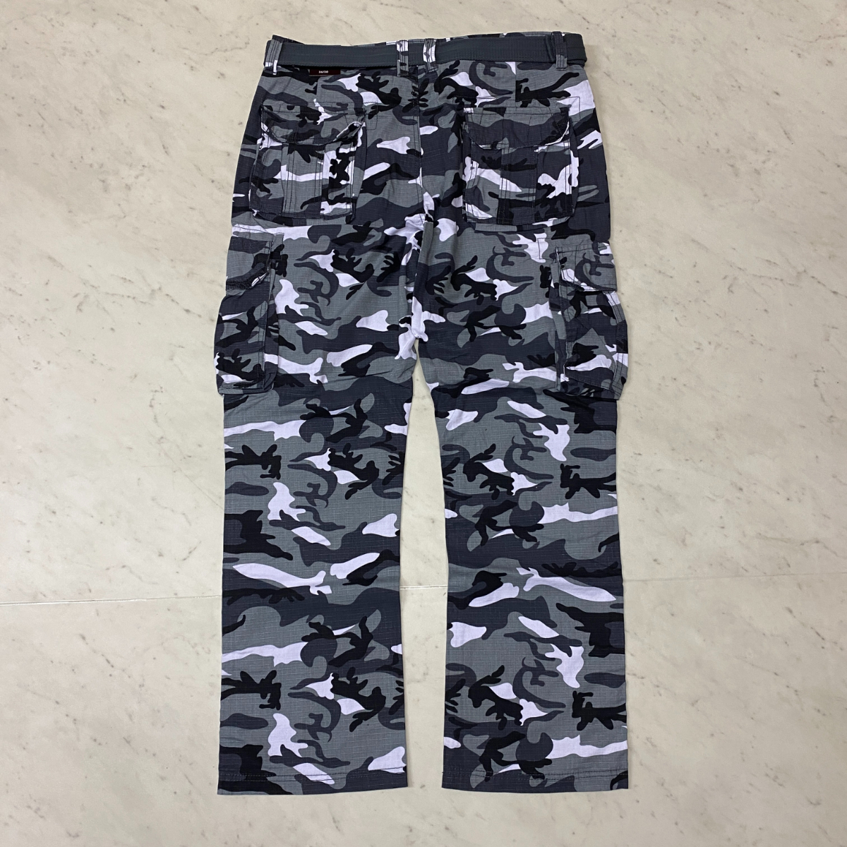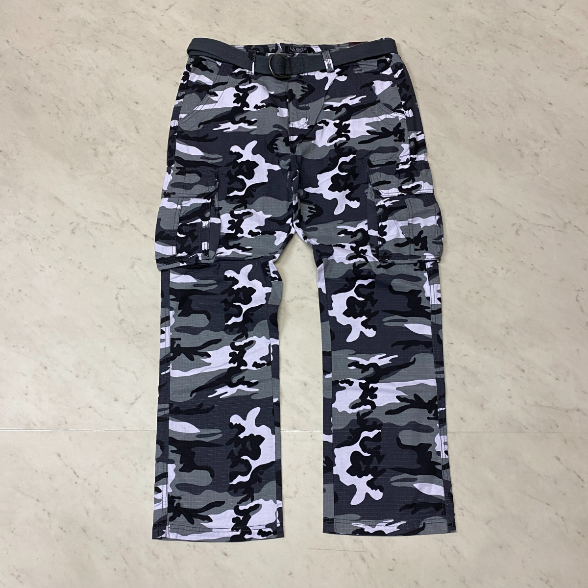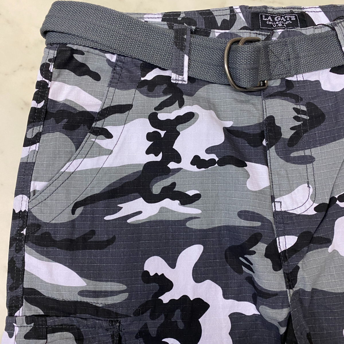 米国老舗 【W34】 LA GATE エルエーゲート 迷彩 カモフラージュ ゆったり カーゴパンツ ベルト付き LTグレー USA正規品 (JNS28)