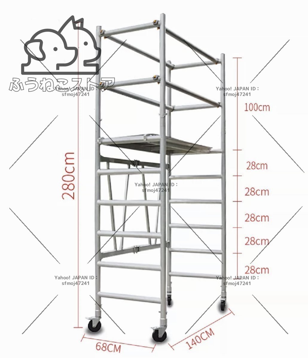 高品質 140*68*280cm折り畳み式 アルミ合金 プラットフォーム 昇降できる 足場 移動 工事 装飾 登る梯子