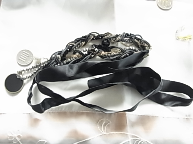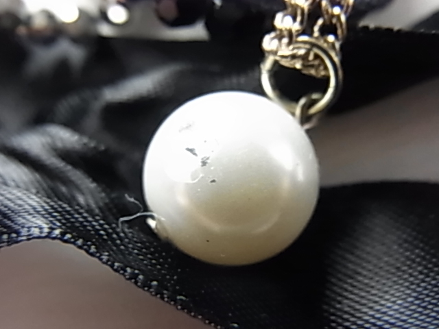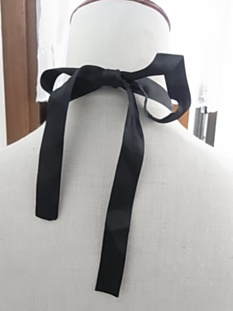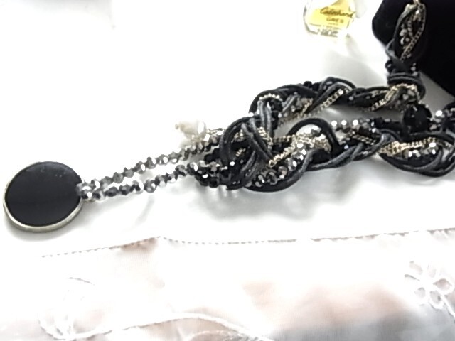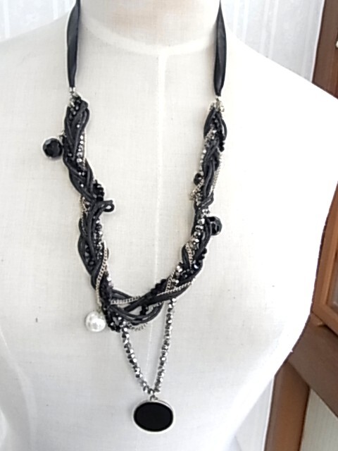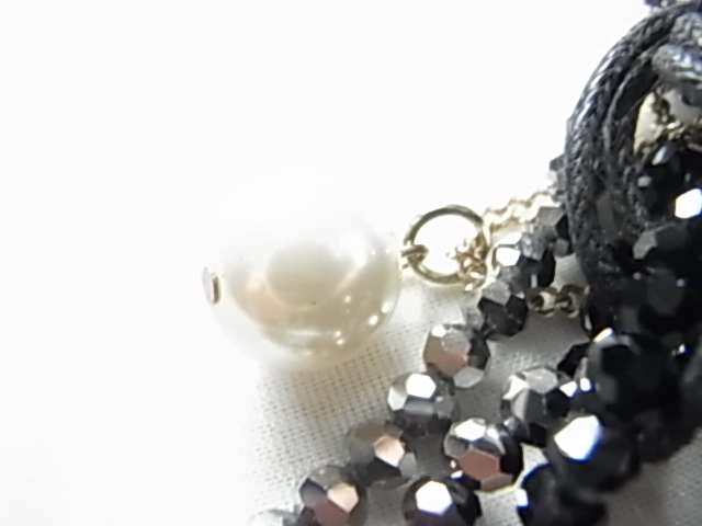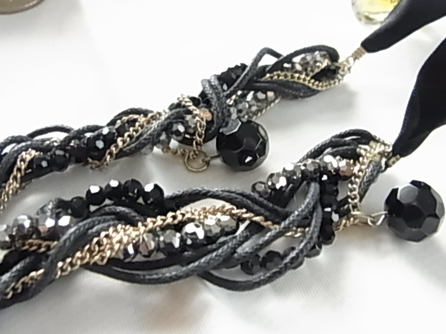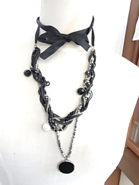 キラキラ輝くビジューが素敵 ブラックトーンのトップやリボンがお洒落感 リボンで結ぶ 調節可能 ガーリーなネックレス■