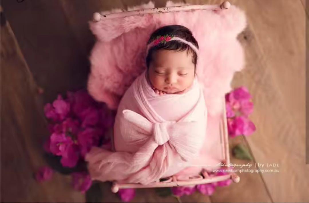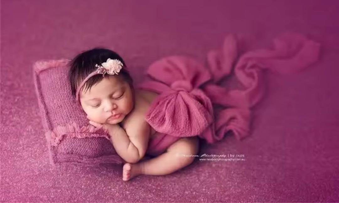 おくるみとして使わなくても、背景布として敷いたり、かけて撮影するだけでも素敵な1枚に