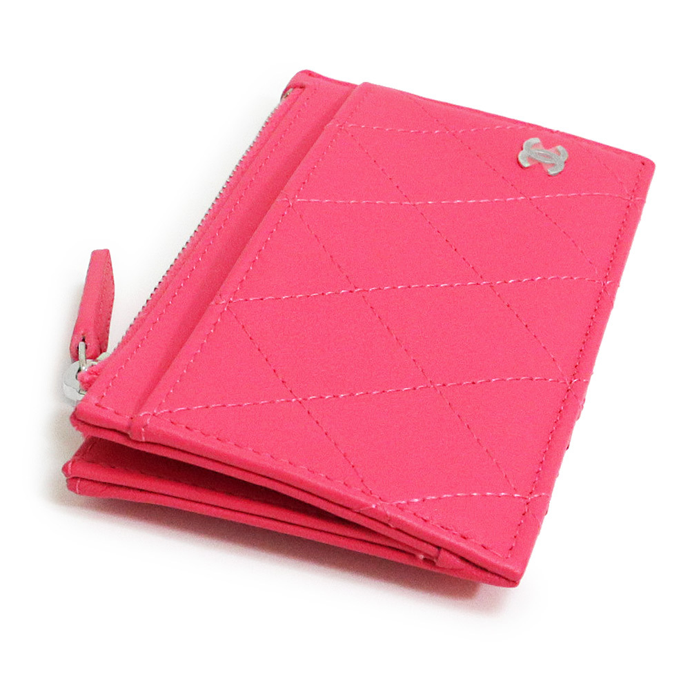 (新品・未使用品)シャネル CHANEL マトラッセ フラグメント コイン カード パスケース 名刺 定期 小銭入れ 財布 レザー ピンク AP3823
